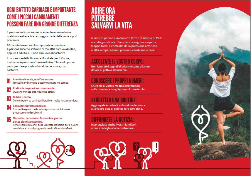 Il tema della Giornata Mondiale del Cuore 2025 è #Don’tMissABit – #NonPerdereIlBattito, un invito a non trascurare la salute del cuore e a prevenire le patologie cardiovascolari, principali cause di morte al mondo con 17,9 milioni di vittime ogni anno.