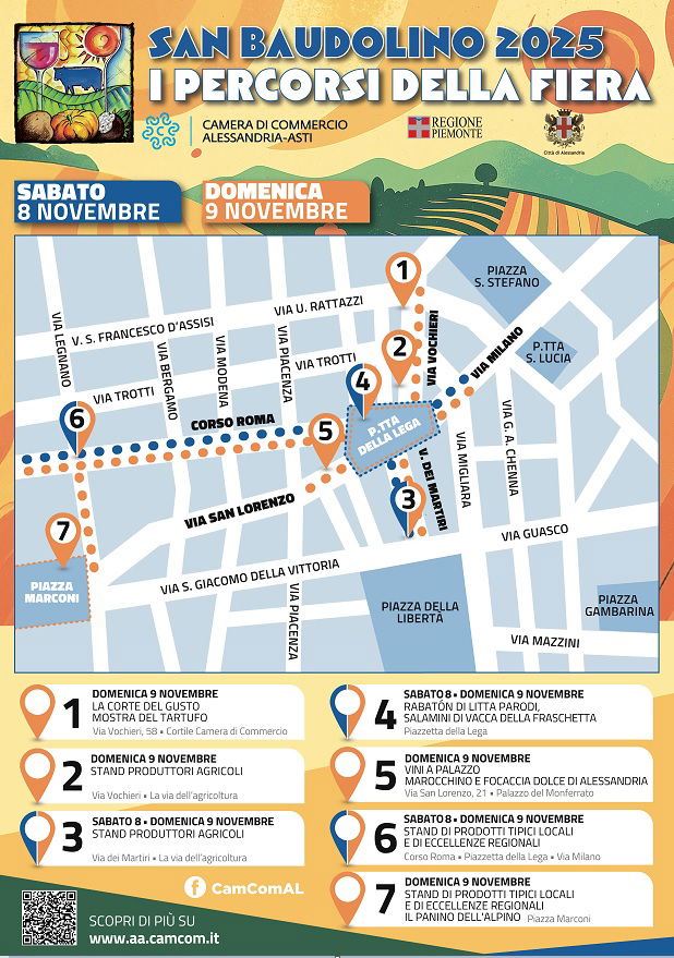 Organizzata dal Comune di Alessandria in collaborazione con la Camera di Commercio di Alessandria-Asti, la Regione Piemonte, le principali associazioni di categoria e numerosi enti del territorio, la fiera si svolgerà sabato 8 e domenica 9 novembre nel cuore della città e animerà vie, piazze, palazzi storici e musei.