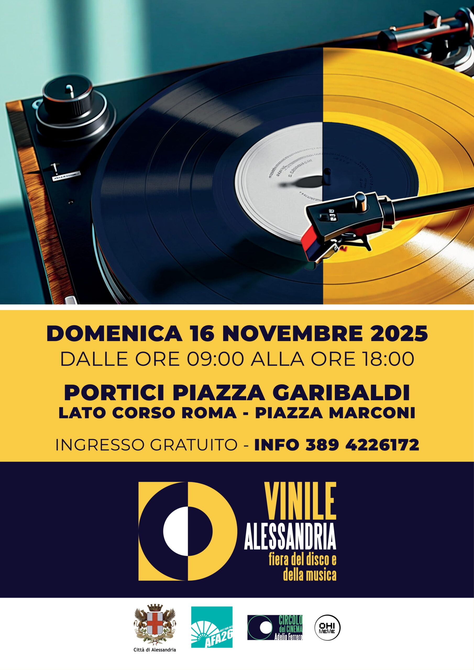 ALESSANDRIA – Torna questa domenica, 16 novembre 2025, Vinile Alessandria, la fiera del disco e della musica. Dalle 10 alle 18, in piazza Garibaldi, lato corso Roma-piazza Marconi, saranno collocati gli stand di espositori in arrivo da tutto il Nord Italia con rarità, vinili, cd e dvd da collezione.