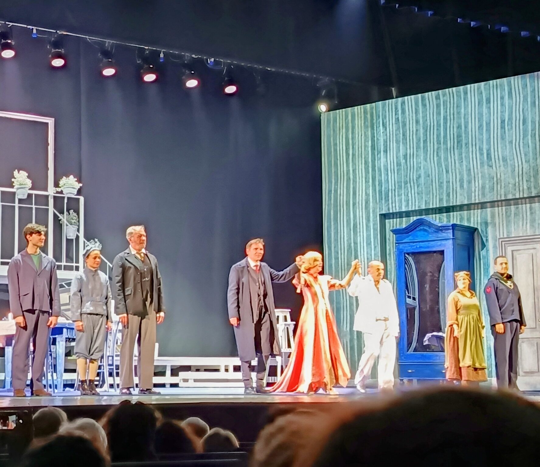 E’ un’atmosfera rarefatta, che suggerisce un altro tempo e altre discrasie ad un testo già basato su apparenze che crollano e verità che non emergono. E’ una storia che esce dal suo secolo, entra in una scena (di Guido Fiorato) sempre più stilizzata e più glaciale per riflettersi in una macroscopica luna che cala dall’alto e diventa specchio/schermo di un tragico travestimento architettato da Paolino, sempre meno uomo e sempre più bestiale nello spingere, per disperazione, la sua donna nelle braccia di un altro.