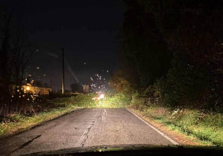 AGGIORNAMENTO ORE 18.30 – Altri disagi sulla rete viaria in provincia di Alessandria. A Rocca Grimalda chiusa la SP185 all’altezza della lavanderia industriale a causa della caduta di un albero (foto sotto, tratta dal gruppo Ovada Sicura, che ringraziamo).