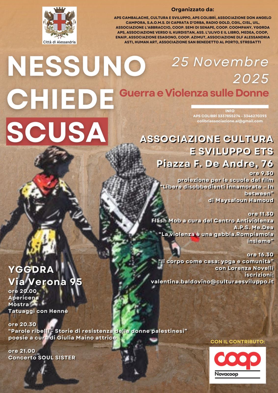 A loro è dedicato l’evento “Nessuno chiede scusa – guerra e violenza sulle donne”, organizzato da una trentina di Associazioni del territorio alessandrino e dal Comune di Alessandria, nella giornata del 25 novembre contro la violenza sulle donne.