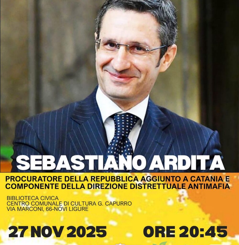 NOVI LIGURE – Appuntamento importante questo giovedì, 27 novembre 2025, nella sala conferenze della biblioteca civica di Novi Ligure. Alle 20.45 parlerà Sebastiano Ardita, Procuratore della Repubblica a Catania e componente della direzione distrettuale antimafia. L’evento è organizzato da Libera, associazione contro le mafie.