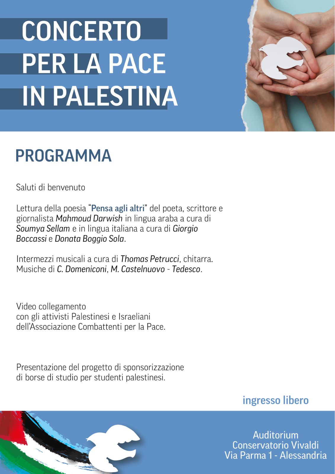 “Parole e musica per la Palestina”: ad Alessandria un concerto per la pace al Conservatorio Vivaldi