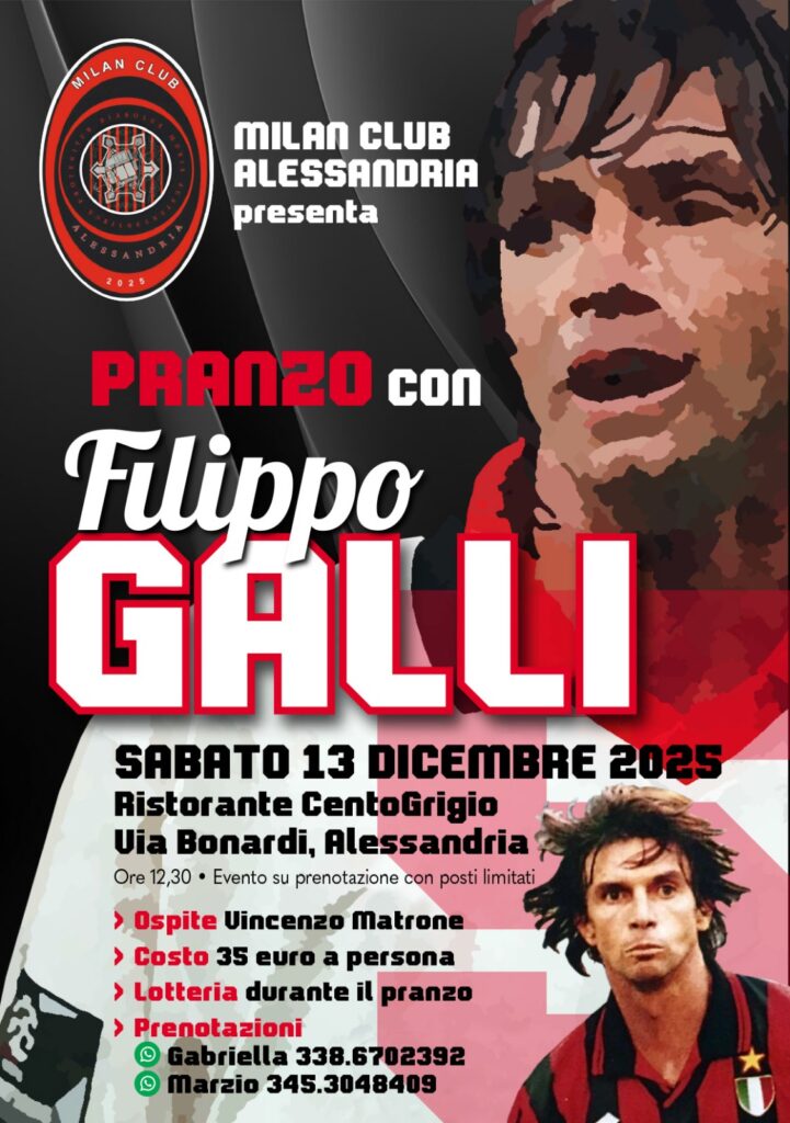 Oggi, sabato 13 dicembre, Filippo Galli ospite ad Alessandria a Centogrigio