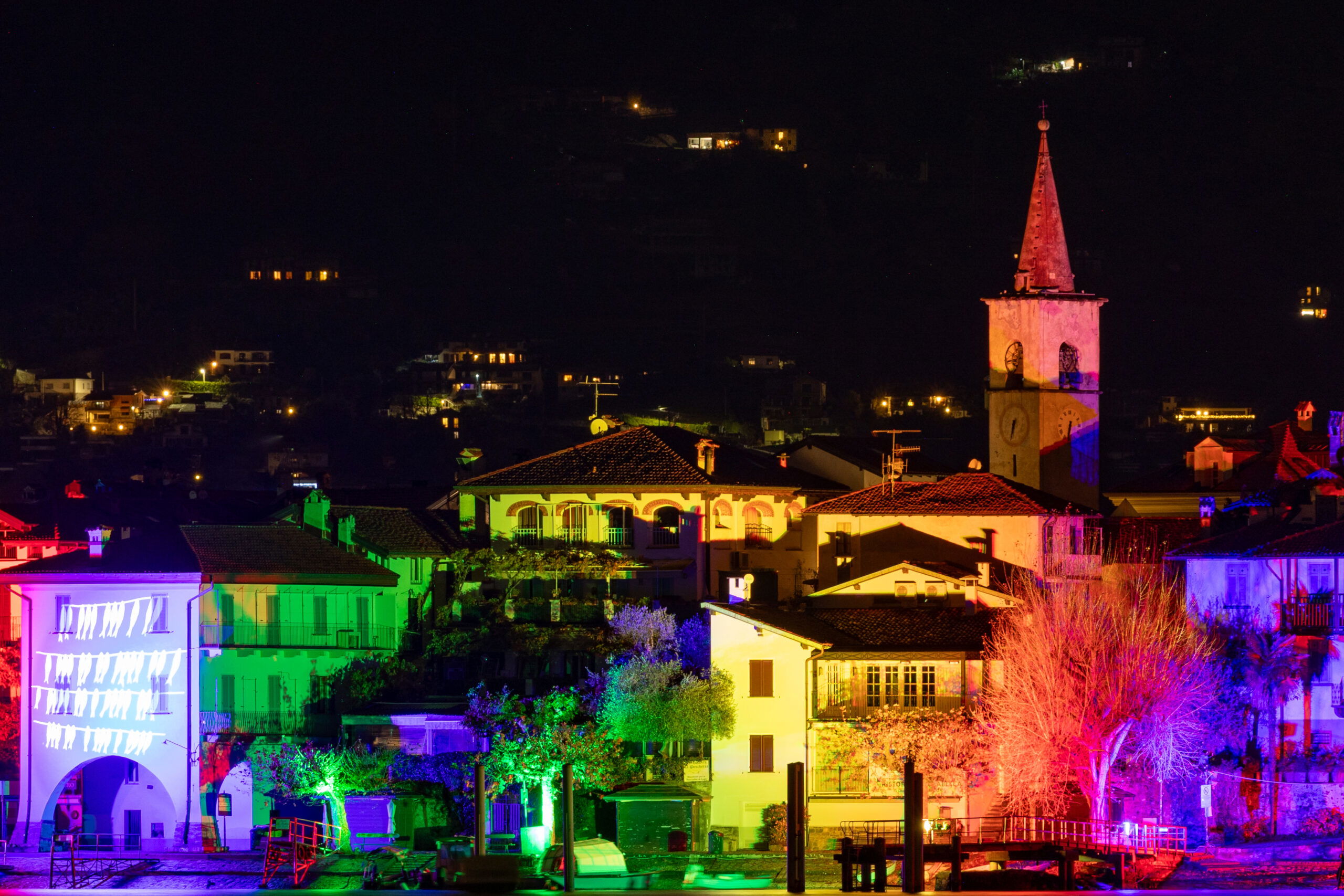 «Con immenso piacere partecipiamo nuovamente a questo progetto in collaborazione con il Distretto Turistico dei Laghi – commenta Cristiano Pigino, CEO Proietta SRL. Sull’ Isola dei Pescatori è stato scelto un tema in sintonia con il luogo e sede di un bellissimo museo tematico sulla pesca. La scelta è quasi naturalmente caduta su grafiche e colori in sintonia con le reti, le barche, i pesci. Sono oltre cento i proiettori utilizzati per illuminare l’isola e in alcuni punti abbiamo utilizzato proiettori di grafiche con fondi colore animati. Le due estremità dell’isola sono scenografie a forti contrasti di rosso e giallo, qui evochiamo il fuoco, quello utilizzato anticamente per la lavorazione delle reti. Un grazie sincero – conclude Cristiano Pigino – all’intero staff del Distretto Turistico dei Laghi per averci aiutato a sviluppare questo stimolante progetto all’interno di questo straordinario paesaggio naturale». In copertina il video di Alessandro Giovanella. Di seguito le foto di MBCerini: