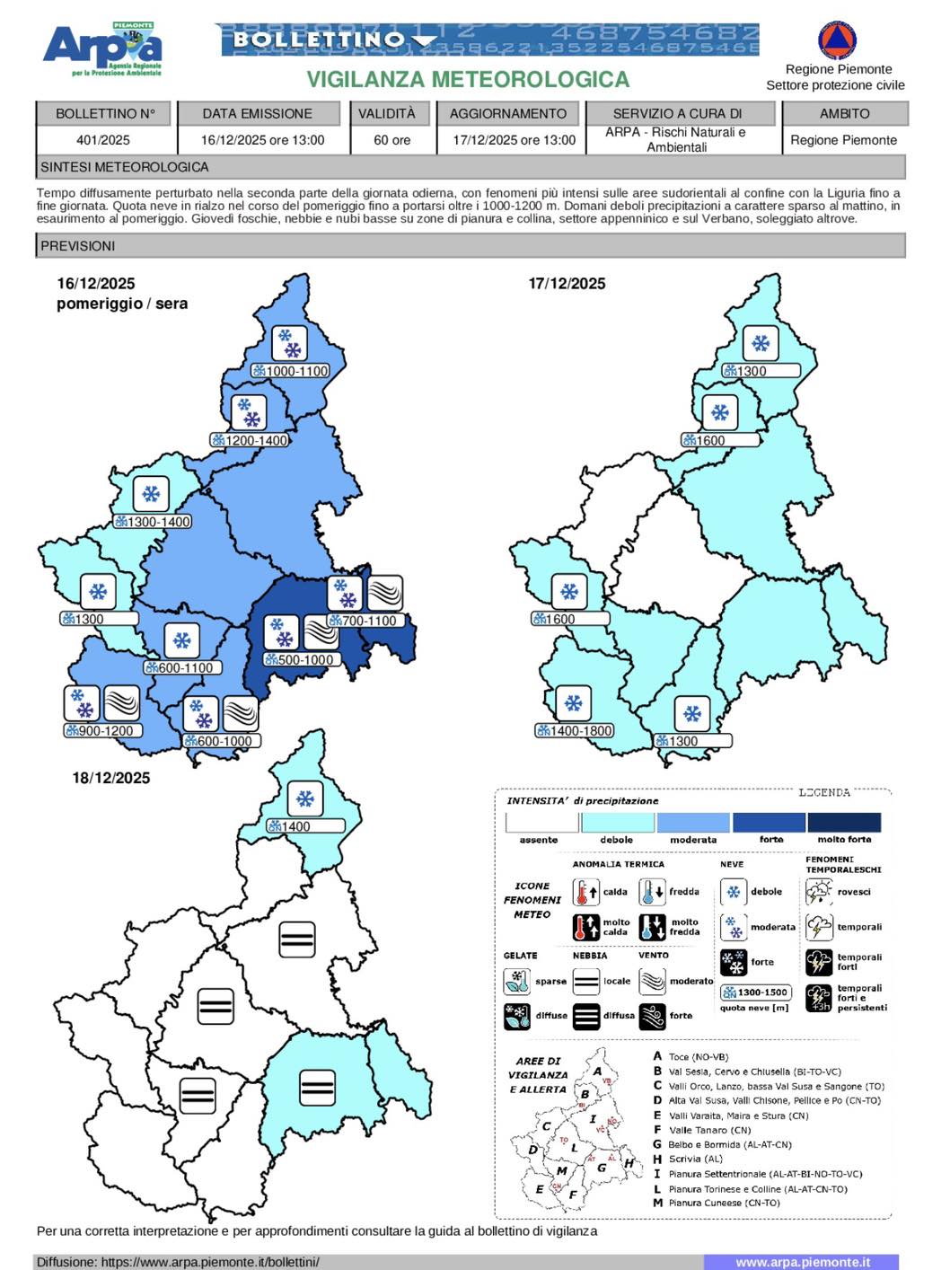 PIEMONTE – Ancora allerta gialla per rischio idrogeologico nelle prossime ore nel basso Piemonte nelle prossime ore. Nella seconda parte del pomeriggio di oggi, martedì 16 dicembre, sono previsti precipitazioni più intense sulle aree sudorientali al confine con la Liguria fino a fine giornata, spiega Arpa.