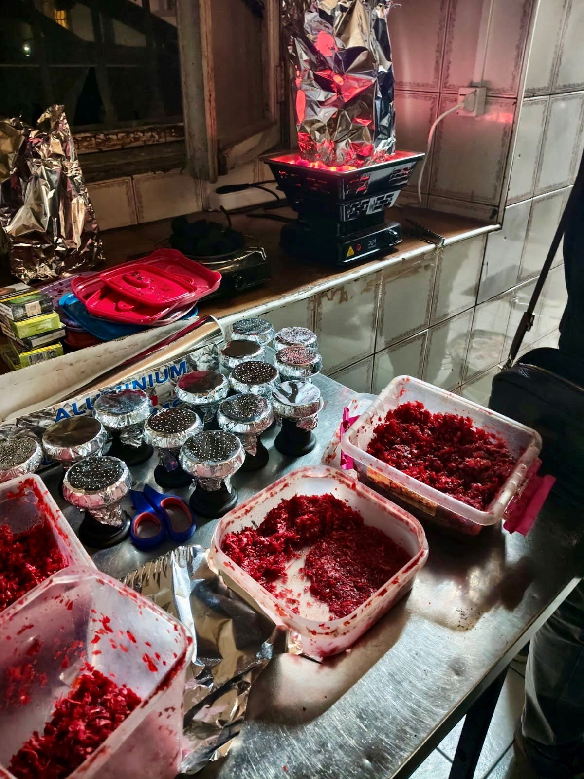 I clienti possono osservare la preparazione del narghilè, che include la scelta del tabacco, la sua disposizione nella testa del narghilè e l’aggiunta di aromi come menta o frutta. Questo processo è considerato un vero e proprio rito. Sebbene il narghilè possa sembrare meno dannoso rispetto alle sigarette, il fumo inalato durante una sessione di narghilè può equivalere a quello di circa 100 sigarette, a causa della durata prolungata delle sessioni di fumo e della presenza di nicotina, catrame, monossido di carbonio e metalli pesanti.