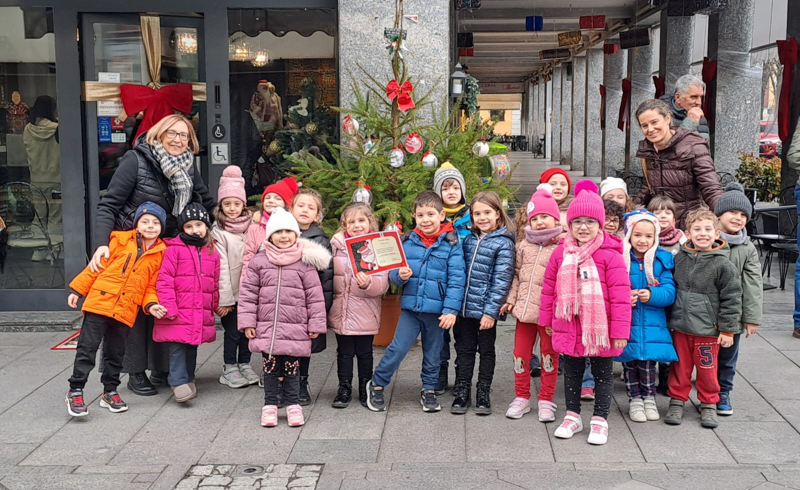 VALENZA – Il centro di Valenza è più colorato e natalizio grazie ai bambini delle scuole cittadine. Nei giorni scorsi sono stati consegnati gli attestati ai piccoli che hanno decorato gli abeti acquistati dalla Maison Damiani e collocati lungo le vie del centro di Valenza.