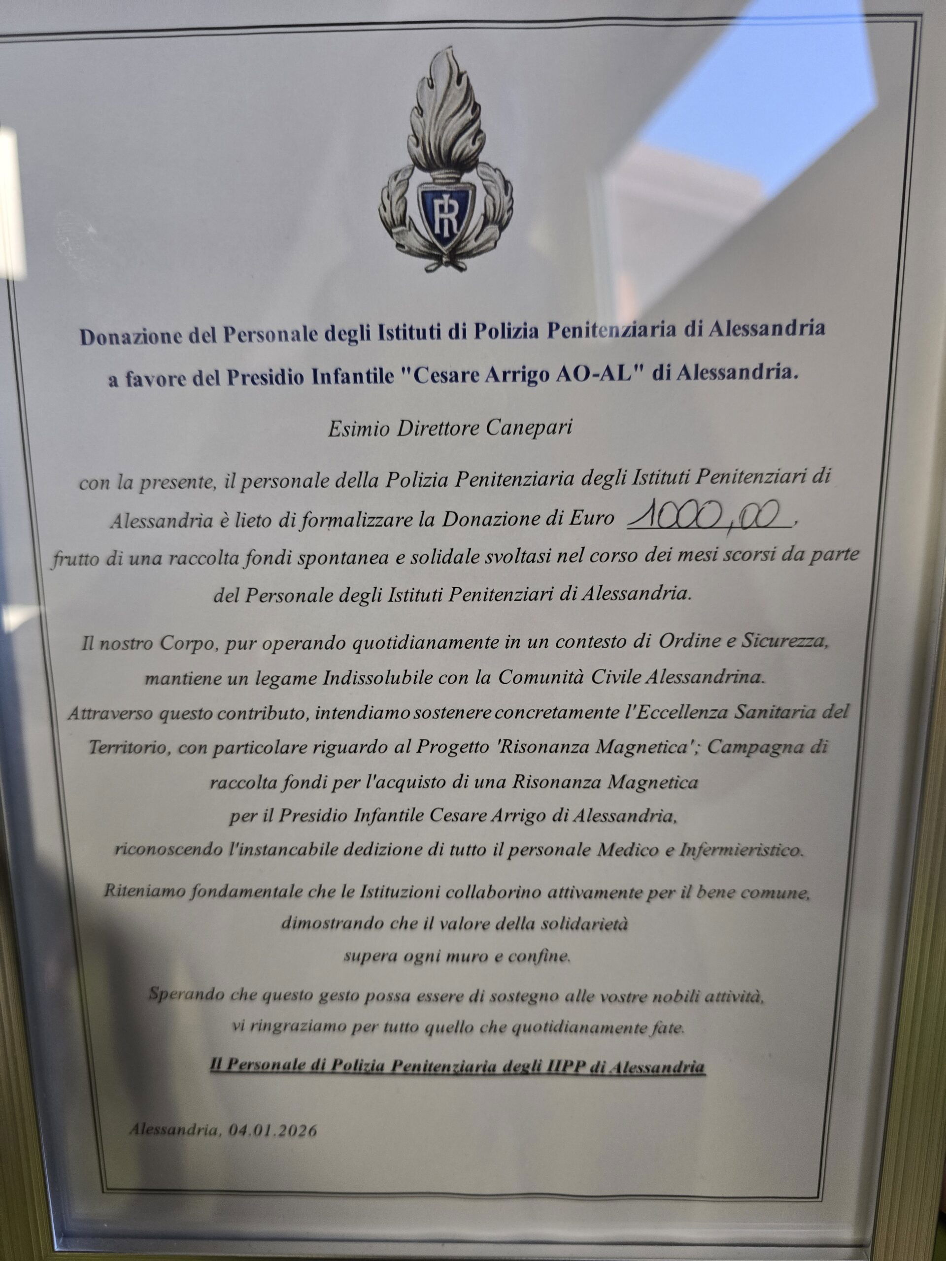 ALESSANDRIA – Se la Befana non trova i suoi bambini a casa, perché costretti su un letto di un ospedale, allora è la vecchietta della Polizia Penitenziaria degli istituti Don Soria e San Michele a muoversi per andare da loro. Questa domenica 4 gennaio 2026, tutto il personale, dai poliziotti all’area amministrativa, dal settore medico a quello amministrativo, ex dipendenti in pensione compresi, si è attivato per alleviare il dolore di chi è stato costretto a passare le feste all’Ospedale Infantile. Una folta delegazione della Polizia Penitenziaria ha infatti scortato la Befana, affiancata peraltro anche da un team di supereroi. Tra i corridoi della struttura la generosa vecchietta ha regalato calze, dolci e giochi, offerti da Mondo Brico. Un gesto delicato e gentile quello ormai consueto della Polizia Penitenziaria di Alessandria, accompagnato anche da un assegno di mille euro destinato alla Fondazione Uspidalet per l’acquisto di una macchina per la risonanza magnetica. Tra sorrisi e stupore tutti i piccoli degenti hanno gradito, dimenticando per un po’ i problemi che li hanno portati all’Infantile.
