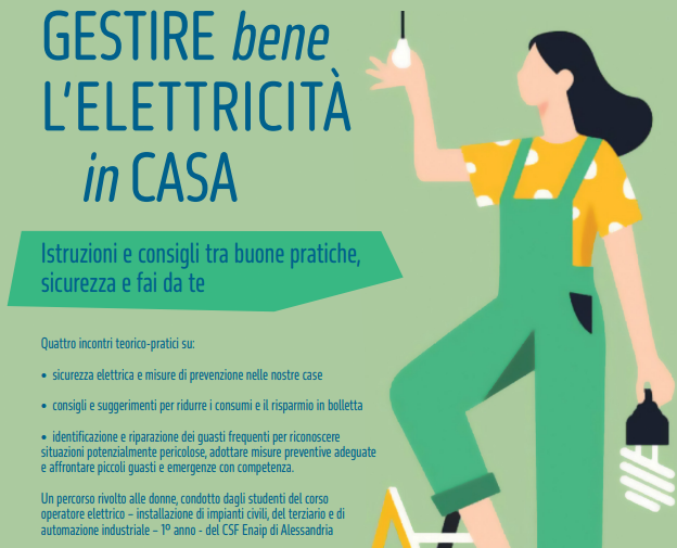 Per fare chiarezza in merito all’argomento, con particolare attenzione alla questione sicurezza e prevenzione degli incidenti, nell’ambito del progetto N.O.I. per la casa è stato programmato dall’Associazione Don Angelo Campora in collaborazione con il CSF Enaip di Alessandria, un percorso informativo/formativo rivolto alle donne, condotto dagli studenti del corso operatore elettrico – installazione di impianti civili, del terziario e di automazione industriale – 1° anno – del CSF Enaip.