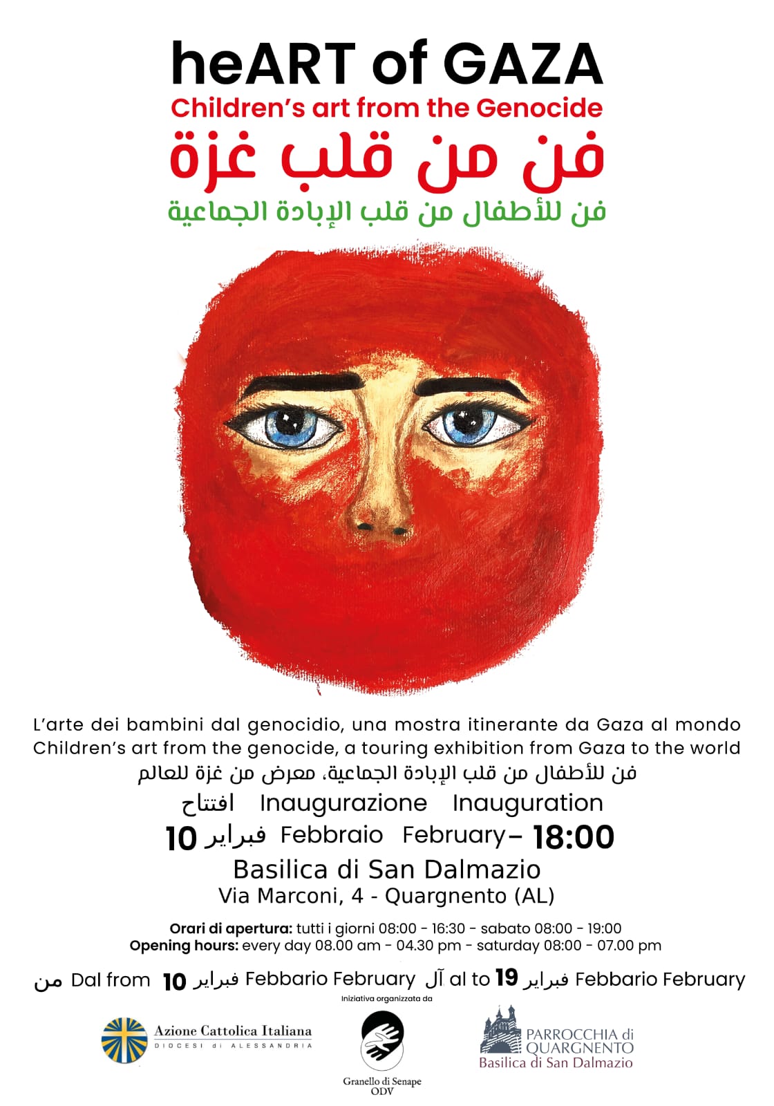 ALESSANDRIA – In collaborazione con il Granello di Senape e all’interno del cammino del Mese della Pace dell’Azione Cattolica diocesana, torna in Diocesi ad Alessandria la mostra “HeART of Gaza” che propone i disegni dei bambini di Gaza, una occasione importante per chi non ha ancora avuto modo di visitarla.