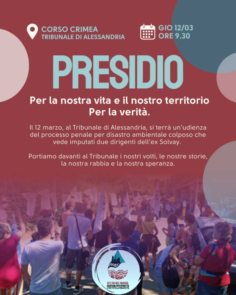 Vogliamo che chi ha inquinato paghi. E che chi ha subito ottenga giustizia. Il 12 marzo portiamo davanti al Tribunale i nostri volti, le nostre storie, la nostra rabbia e la nostra speranza. Perché non abbiamo solo il veleno nel sangue. Abbiamo anche la lotta“.