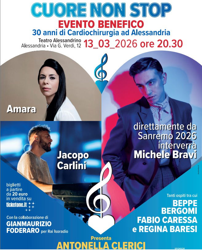 Il momento centrale della giornata sarà la serata alle 20.30 al Teatro Alessandrino, un appuntamento che unirà musica, testimonianze e divulgazione scientifica per raccontare e valorizzare l’eccellenza della Cardiochirurgia alessandrina, diretta da Andrea Audo, e sostenere le attività di ricerca coordinate dal Dipartimento Attività Integrate Ricerca e Innovazione (DAIRI).