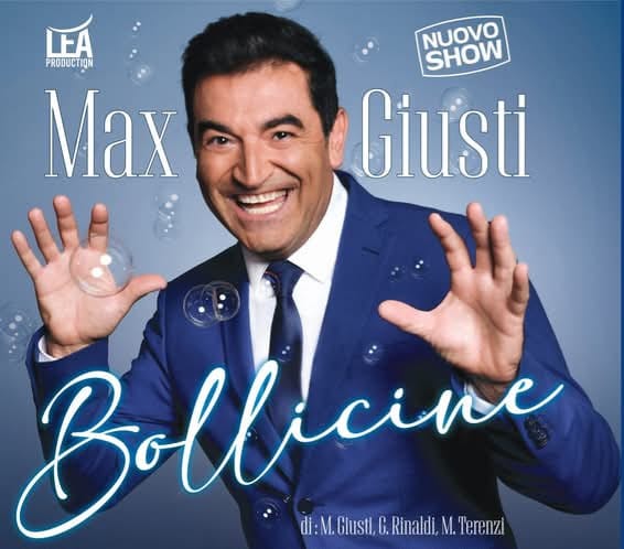 Le bollicine da sempre accompagnano le serate più festose, i momenti in cui c’è qualcosa da brindare. Davanti alle bollicine ci si lascia andare a delle confidenze più particolari, quelle che lo showman sarà pronto a fare al suo pubblico. All’apice della sua maturità personale e professionale Max è pronto a dire le sue verità più scomode, perché se le parole sono sempre politicamente corrette, il pensiero non lo è mai. È un Max inedito, che racconta al pubblico quello che nella vita di tutti i giorni non direbbe mai nemmeno al suo migliore amico. Confessioni a cuore aperto in un clima di festa, con le immancabili bollicine.