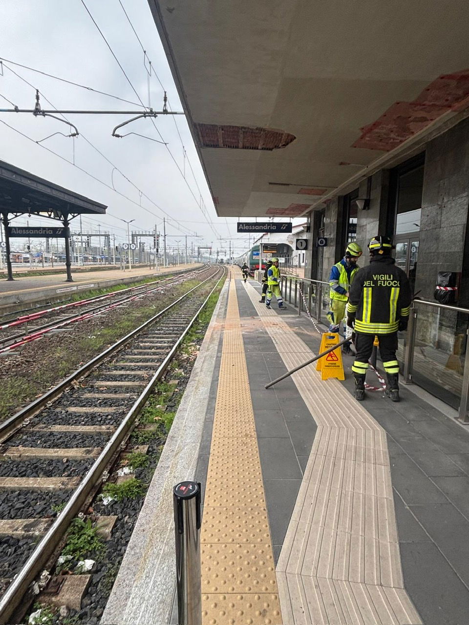 ALESSANDRIA – Intervento dei Vigili del Fuoco nella mattinata di questa domenica alla stazione ferroviaria di Alessandria, dove si è verificato il cedimento di una porzione di intonaco da una pensilina sul primo binario.
