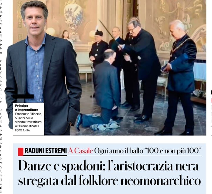 “Mackinson prosegue spiegando che succede due volte l’anno e a organizzare è Pier Felice degli Uberti, presidente dell’Istituto Araldico Genealogico Italiano e della Commissione internazionale per gli Ordini Cavallereschi, nonché consigliere e garante scientifico di Royal Protocol. I momenti clou sono il Ballo dei 100 e non più 100 e l’investitura nel Vitéz, ordine fondato dal reggente ungherese filo nazista Miklòs Horty, alleato della Germania nazista durante la seconda guerra mondiale. Tra i partner c’è Aristocrazia Europea, con il suo Barone Nero, l’estremista milanese Roberto Jonghi Lavarini. E infine il Royal Protocol finisce per fare da scudo tecnologico a un mondi che odora di muffa, razzismo ed eversione. Il blockchain di Emanuele Filiberto rischia di diventare la lavatrice perfetta per ripulire le peggiori macchie e scorie del passato”.