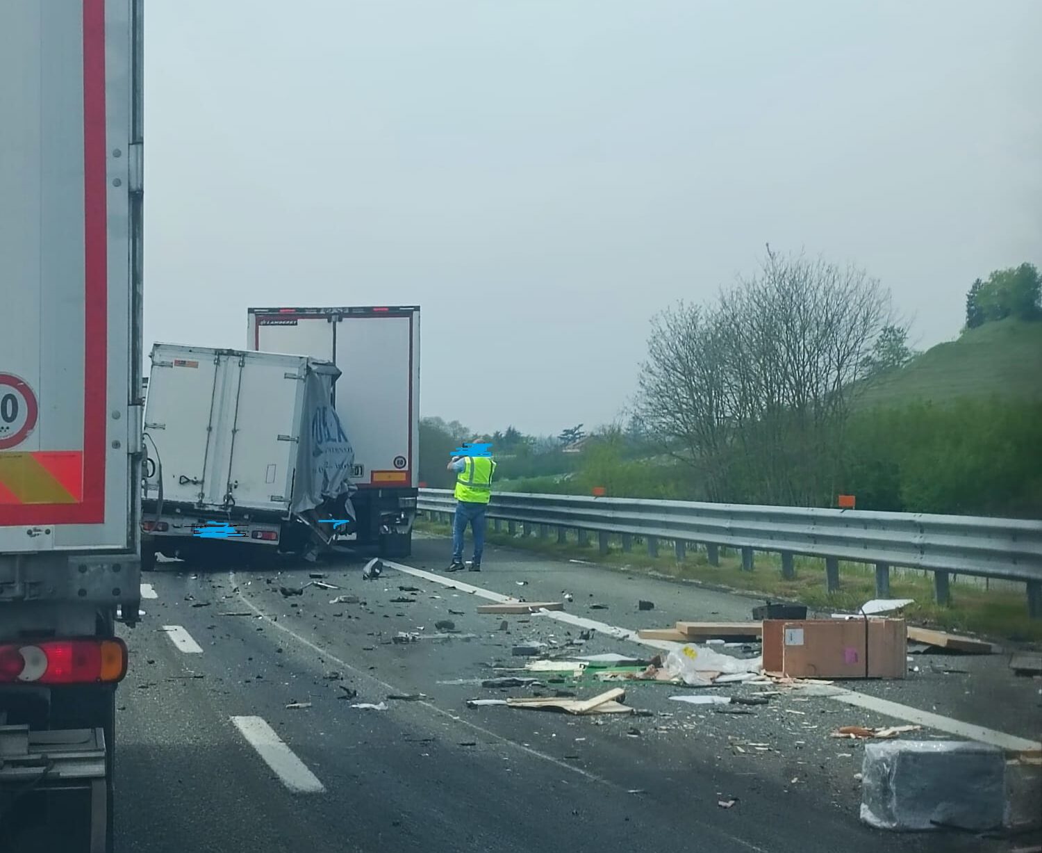 Si registrano incolonnamenti verso il capoluogo regionale e materiale sparso lungo la carreggiata. Ringraziamo i nostri lettori per la foto.