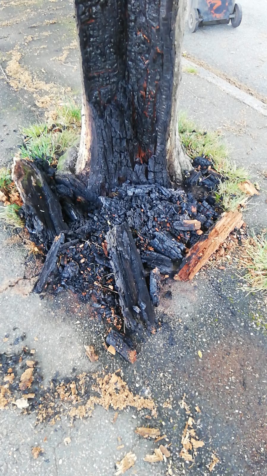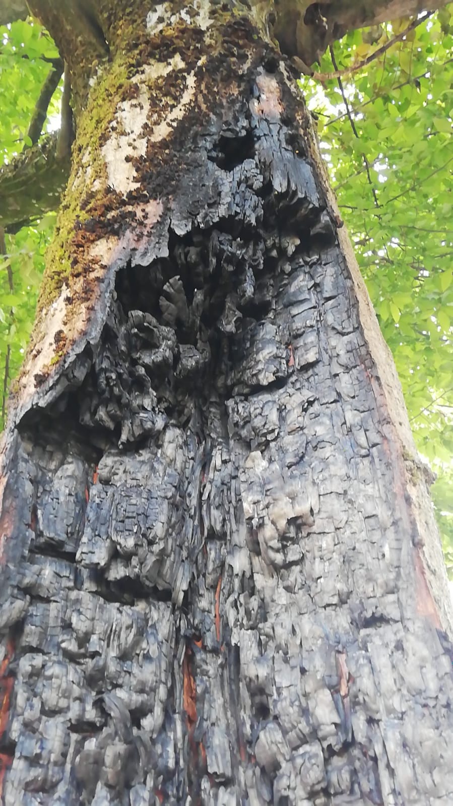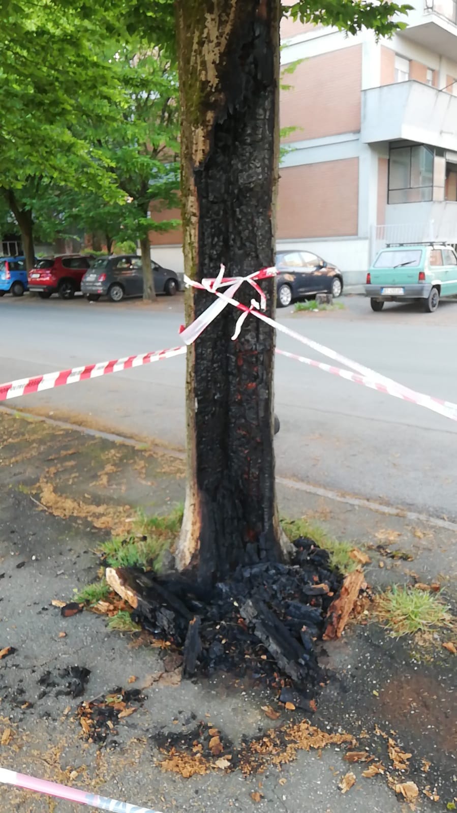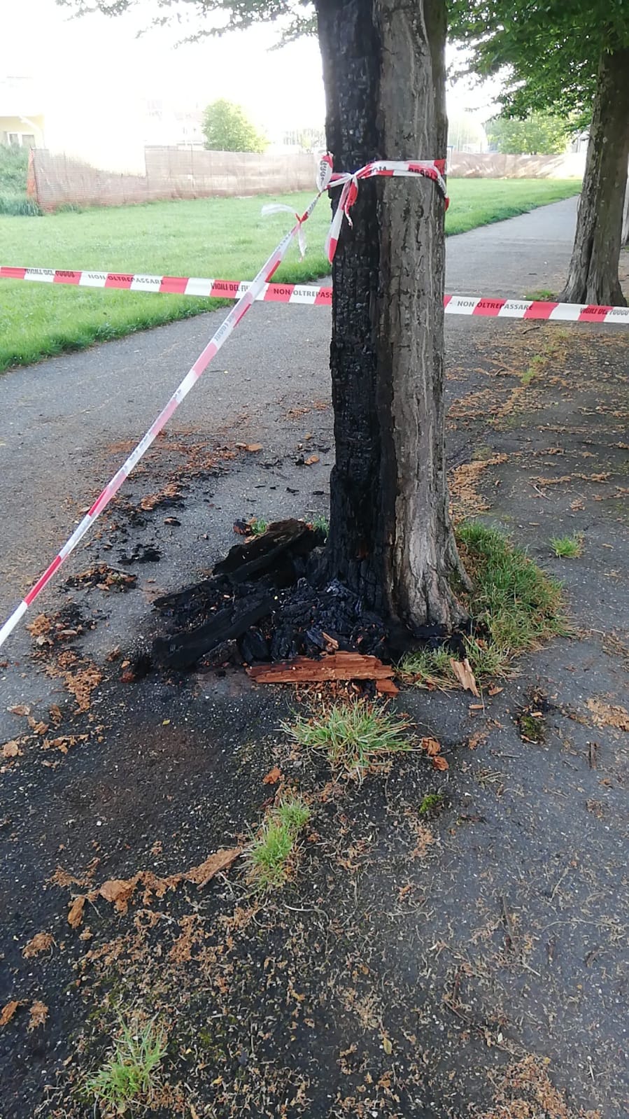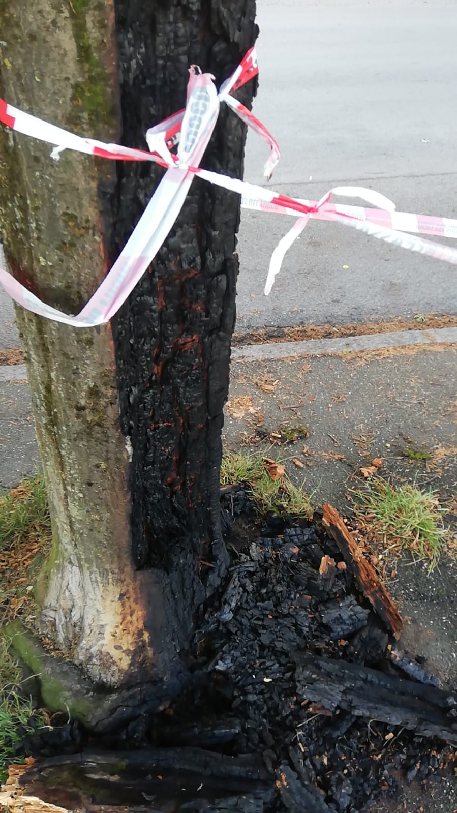 Come si vede dalle immagini il tronco è stato completamente bruciato. Ringraziamo Giuseppe per la segnalazione e le foto: