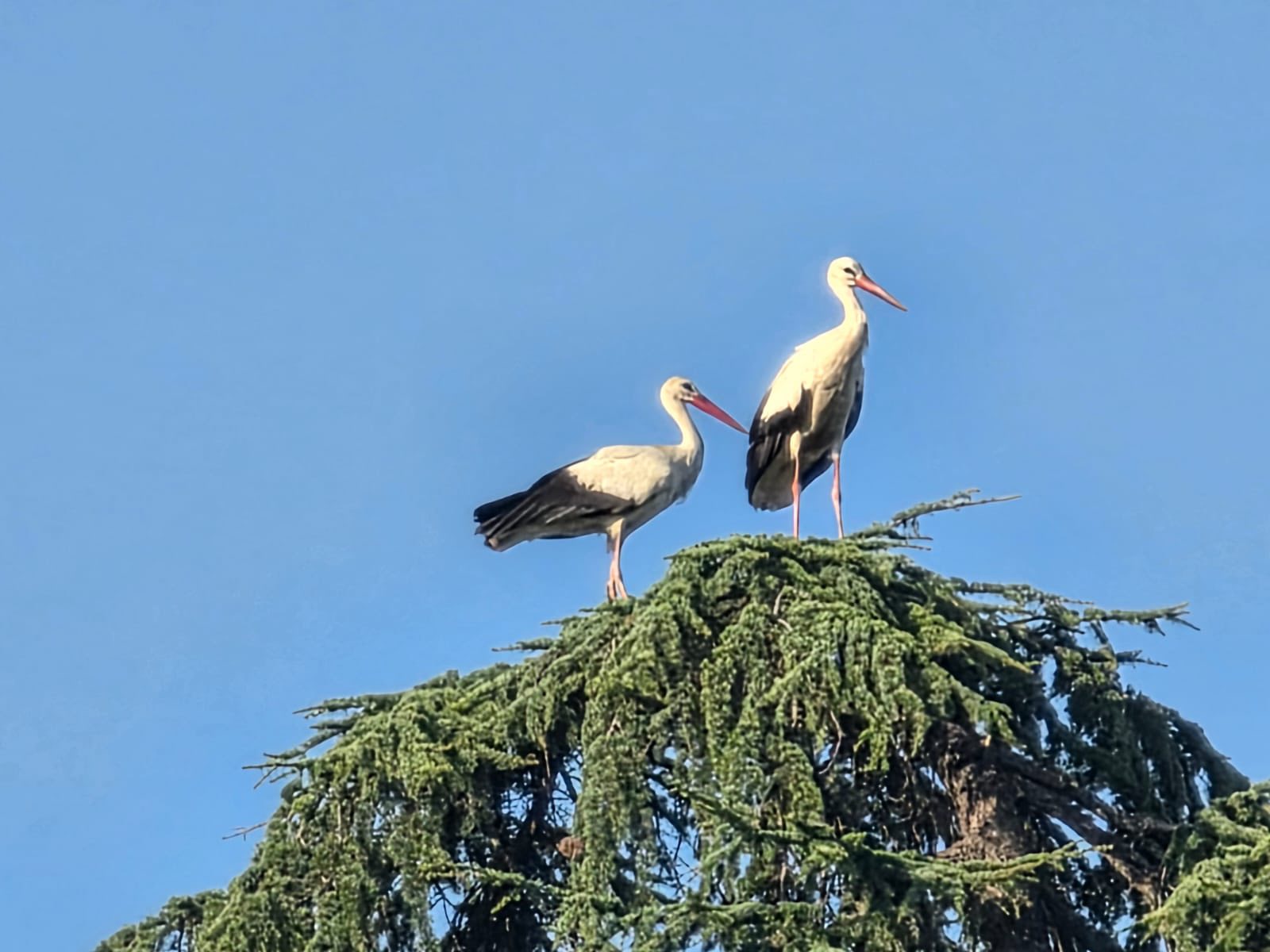 ALESSANDRIA – “Un incontro speciale che ci ricorda quanto sia preziosa la natura che ci circonda”. Così suoi suoi canali social Amag Ambiente ha descritto la piacevole sorpresa di ieri. Alcune cicogne, infatti, hanno sostato sui pini dell’area verde dell’azienda alessandrina, in viale Michel. Foto tratte dalla pagina Facebook di Amag Ambiente.