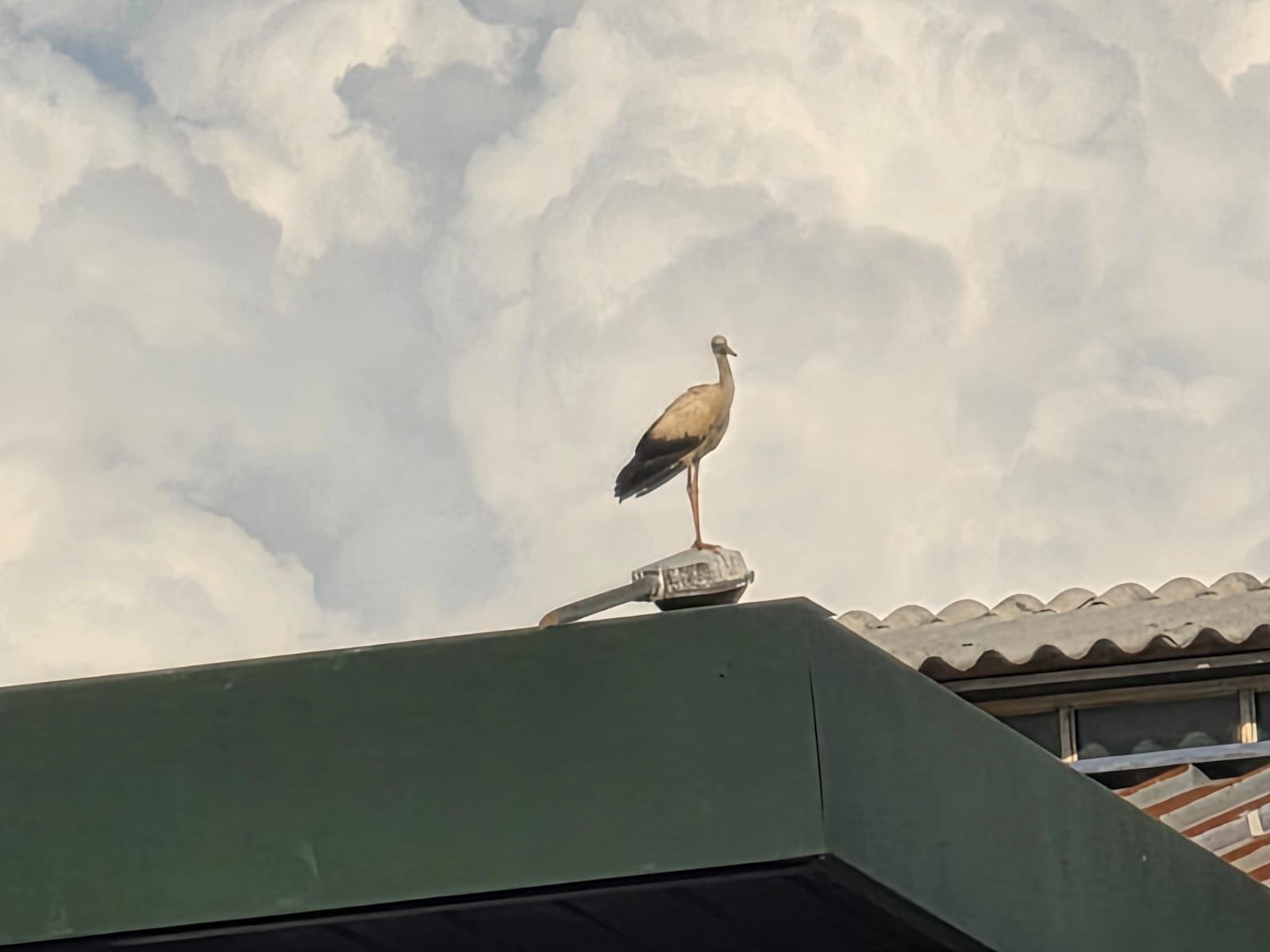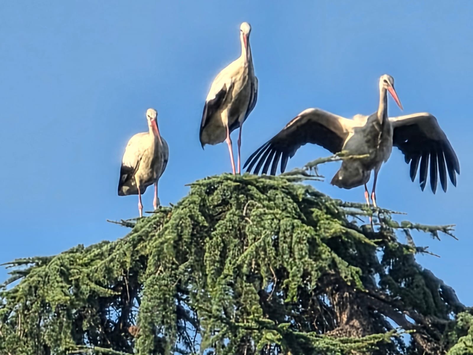 Alcune cicogne fanno tappa ad Alessandria sui pini dell’area verde di Amag Ambiente
