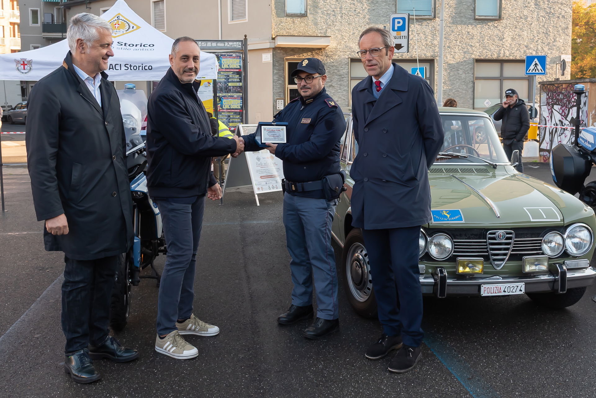 ALESSANDRIA – Domenica scorsa la Polizia di Stato di Alessandria, con la Sezione di Polizia Stradale, ha preso parte con onore al raduno di auto d’epoca promosso dall’Automobile Club d’Italia (ACI) e da ACI Storico. In piazza Madre Teresa di Calcutta, il pubblico ha potuto ammirare due motociclette in dotazione alla Stradale e la storica Alfa Romeo Giulia, simbolo delle forze dell’ordine negli anni Sessanta e Settanta. Durante la cerimonia di apertura, la Polizia è stata premiata con una targa ricordo per il suo contributo alla sicurezza sulle strade.