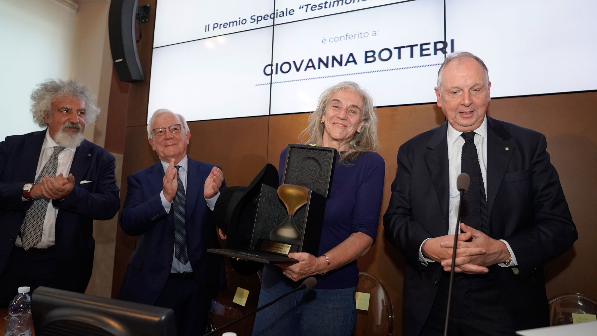 Il riconoscimento “Testimone dell’informazione“, istituito lo scorso anno dal Premio Marchiaro è stato assegnato a Giovanna Botteri per il suo lungo impegno nel giornalismo italiano in qualità di corrispondente della Rai dagli Stati Uniti, da Pechino e da Parigi testimoniando gli avvenimenti che hanno sconvolto aree del mondo con caratteristiche geo politiche diverse, informando i telespettatori con dovizia di informazioni, competenza, indipendenza, trasparenza. Il premio, una clessidra in vetro di Murano della linea Venini, è stato realizzato e offerto dalla ditta Damiani di Valenza.
