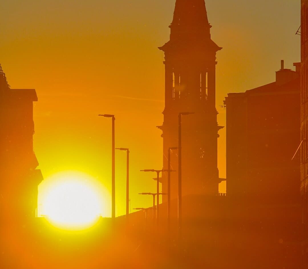 Il tramonto del sole dietro al campanile: la foto scattata ad Alessandria