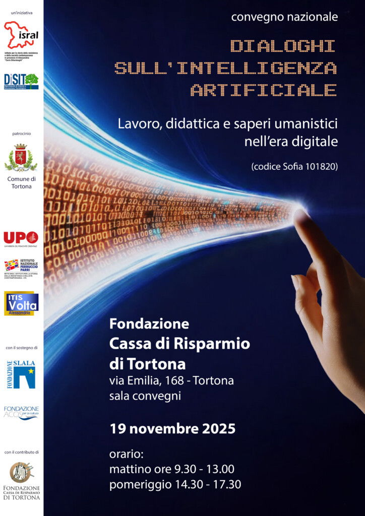 TORTONA – L’Isral, l’Istituto storico per la resistenza di Alessandria, in collaborazione con il Laboratorio Informatica del Disit, ha organizzato un convegno introduttivo sull’intelligenza artificiale, sui suoi usi e sui problemi etici, ecologici e culturali che pone, in relazione alle linee guida pubblicate dal MIM che forniscono un quadro di riferimento strutturato per l’adozione consapevole e responsabile dei sistemi di Intelligenza Artificiale.