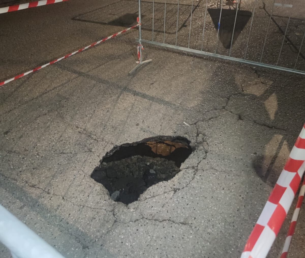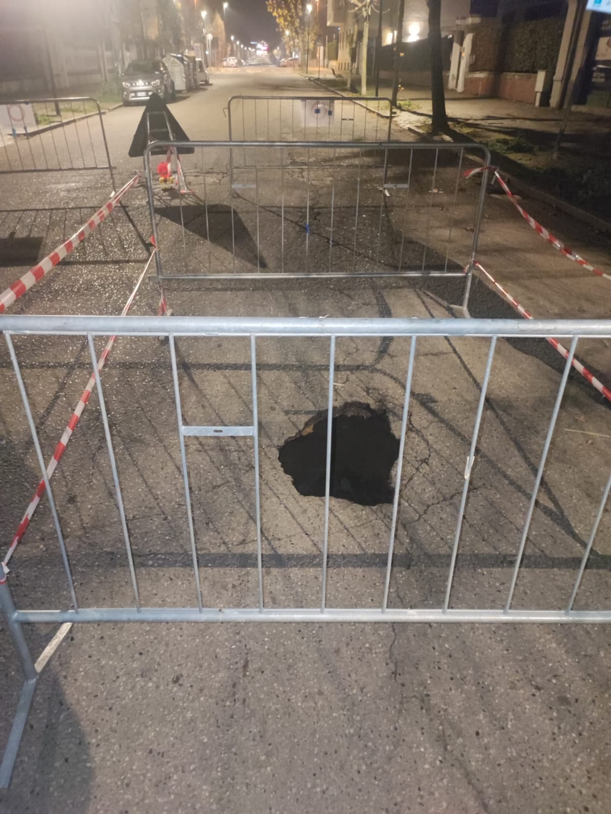 Profonda buca in viale Cellini a Valenza: strada chiusa al traffico