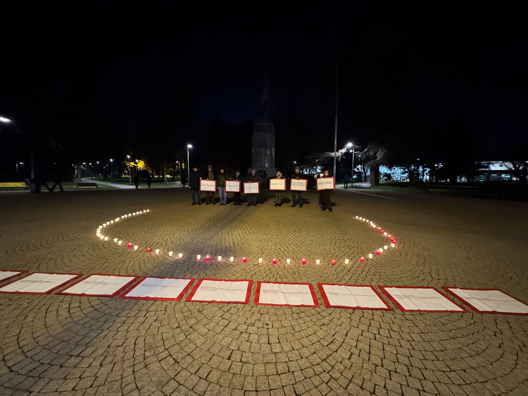 ALESSANDRIA – Questo mercoledì 10 dicembre anche ad Alessandria si è celebrata con un presidio ai giardini di corso Crimea una data importante, il 77° anniversario della Dichiarazione universale dei diritti umani. Hanno aderito gli esponenti di tante associazioni: Per la pace e la nonviolenza, Acli provinciale, Amnesty Piemonte, Anpi provinciale, Cittadinanzattiva, Città Futura, Colibrì, Equazione, Ics, Libera, Masci, Orizzonti Verdi, Pro Natura, L’ulivo e il libro. Durante il presidio sono stati letti i 30 articoli.