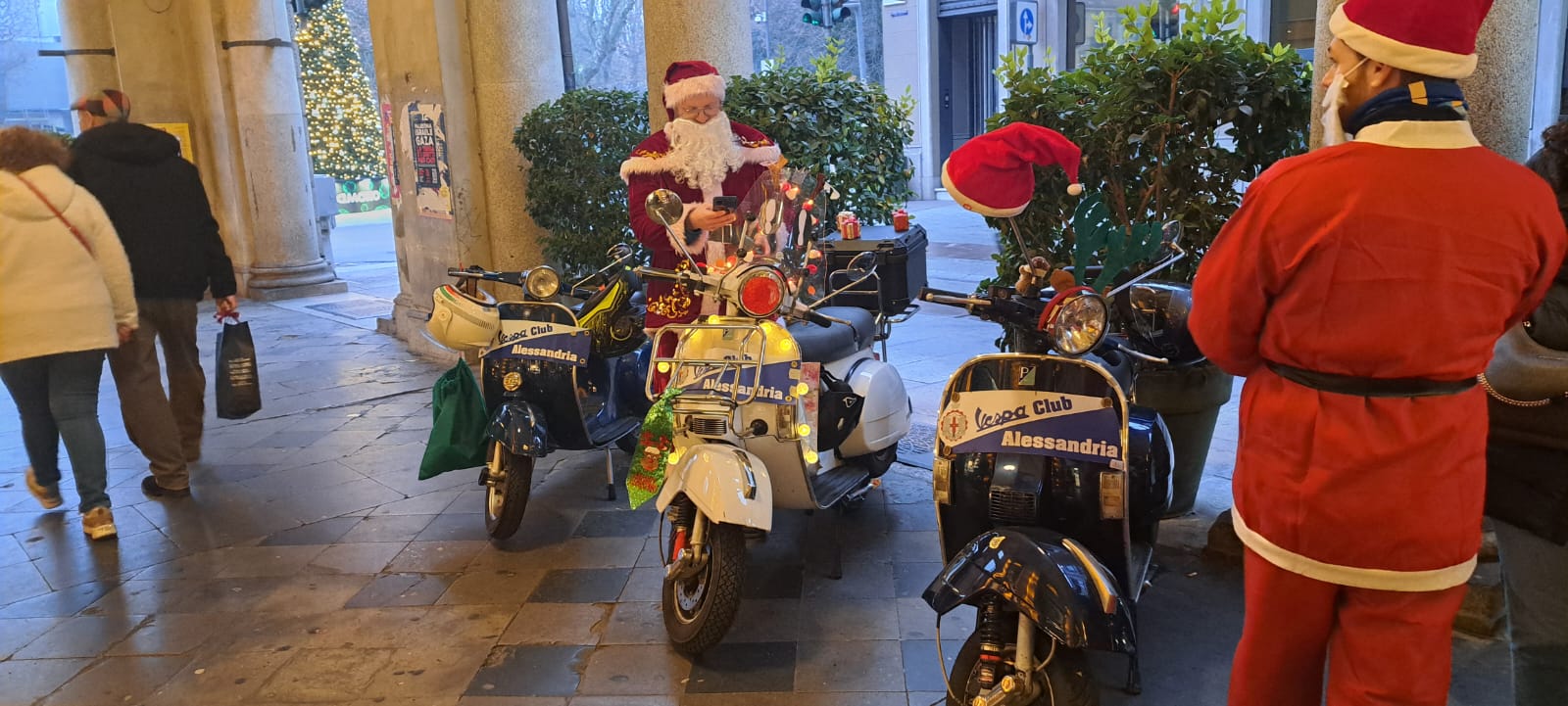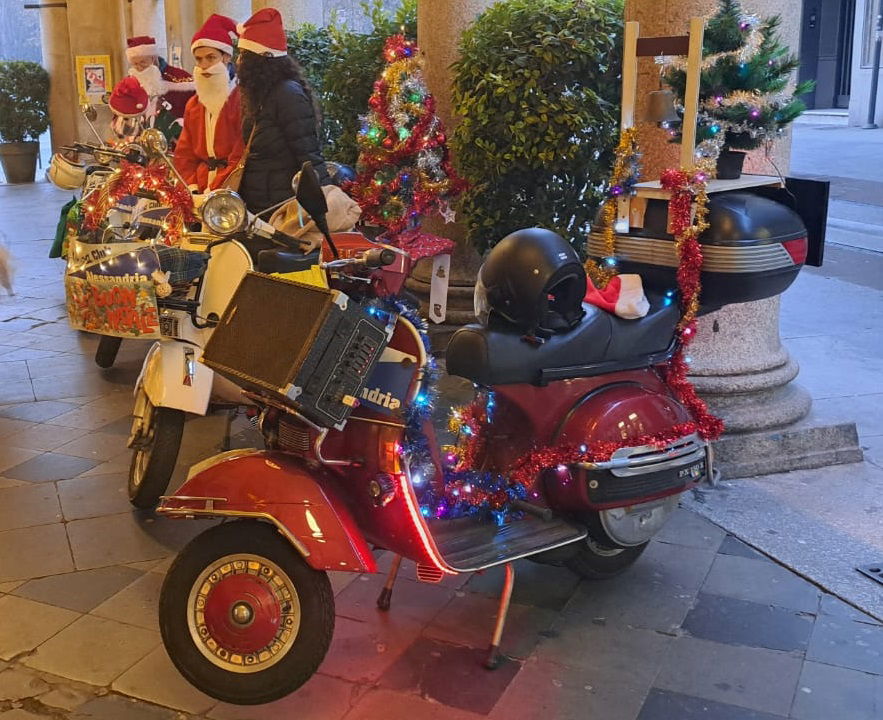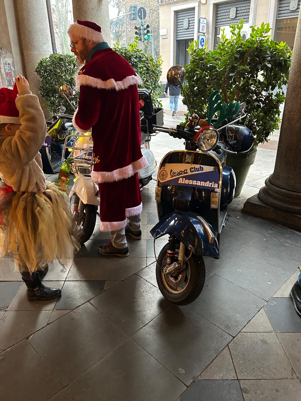 ALESSANDRIA – Tanti Babbi Natale in Vespa questo sabato pomeriggio ad Alessandria. Il Vespa Club della città, rappresentato dal presidente Gianandrea Cavalleri, ha organizzato in corso Roma un momento di gioia per tanti bambini ai quali i Babbi Natale hanno donato dolciumi e penne.