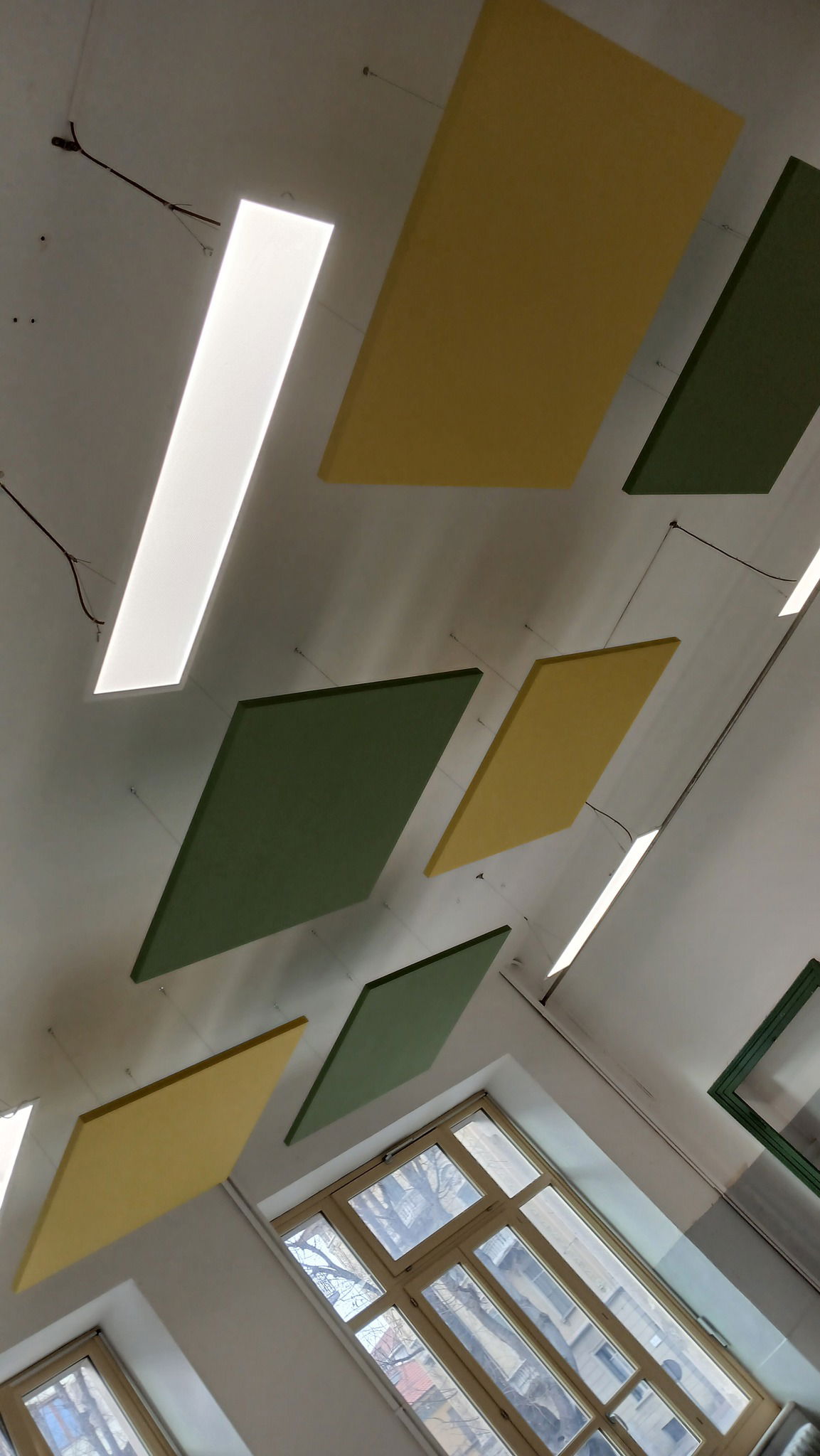 Un’altra novità già anticipata tre mesi fa e in parte realizzata riguarda l’installazione di pannelli fonoassorbenti (foto in basso) in due mense: alla scuola Galilei l’operazione è stata completata nei primi giorni di gennaio. Presto sarà replicata anche alla scuola Zanzi.