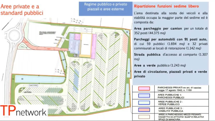 ALESSANDRIA – La società spagnola Padrosa realizzerà un’area attrezzata di servizio per mezzi pesanti a Castelceriolo, tra il casello di Alessandria est (“un fattore determinante nella scelta della localizzazionee” è stato spiegato, ndr) e la zona industriale. Se n’è parlato questo mercoledì nella Commissione Sviluppo del Territorio dove è stato illustrato il progetto. Estesa per quasi 75 mila metri quadrati (più di dieci campi da calcio, ndr), l’area sarà destinata a ospitare un parcheggio con 352 posti riservati ai camion. Nove stalli saranno riservati a mezzi che trasportano sostanze infiammabili. Otto posti, inoltre, saranno destinati a mezzi che trasportano merci pericolose. Dieci posti, inoltre, riguarderanno i mezzi con beni commestibili e quindi collegati a colonnine di alimentazione elettrica per tenere attivi gli impianti di refrigerazione. A supporto degli autotrasportatori sorgerà anche una palazzina di circa 1700 metri quadri con diversi servizi, aperti a tutti: dalla ristorazione con 120 coperti a un minimarket, dalla lavanderia agli uffici, con spazi dedicati ai conducenti (docce, servizi, spogliatoi, aree relax).