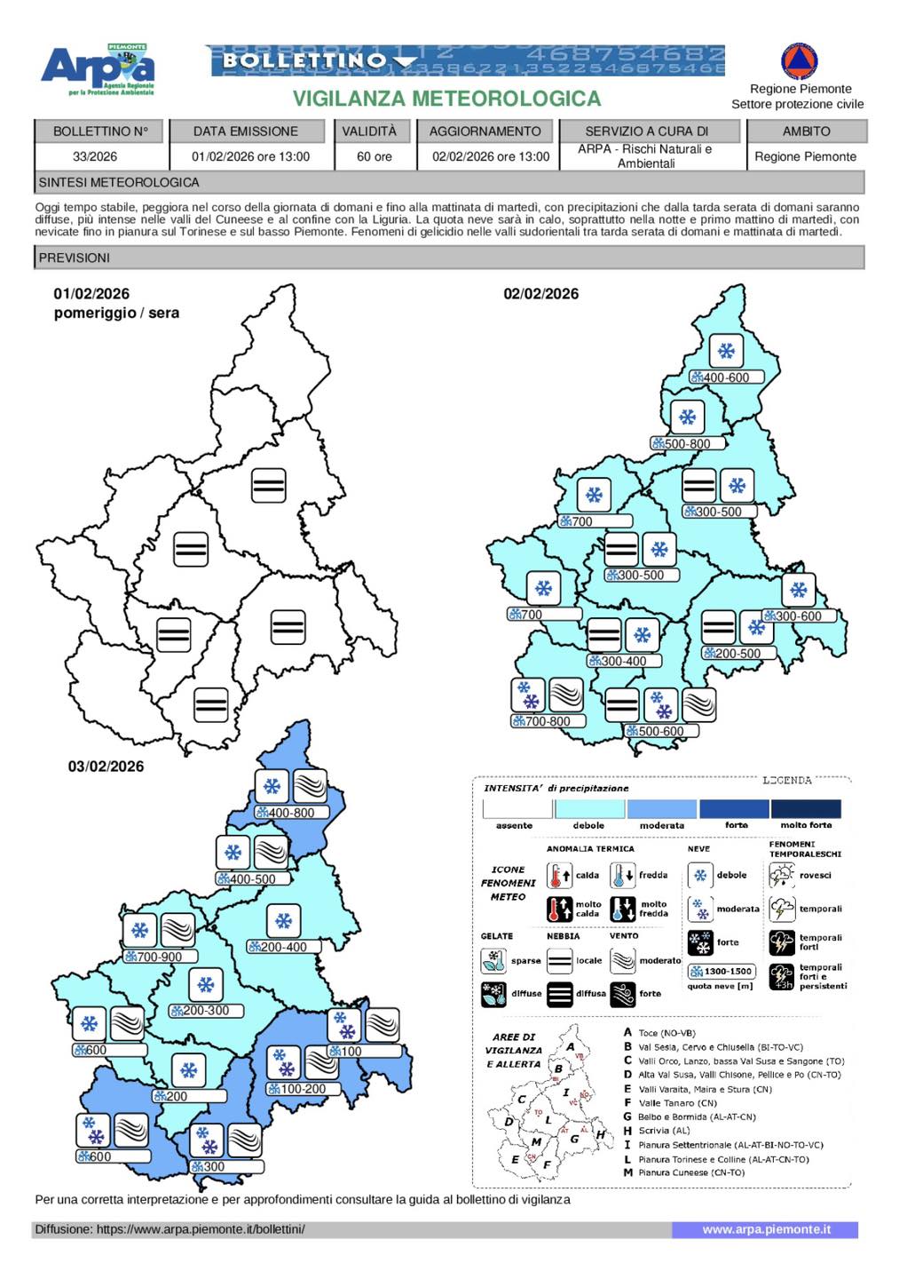 PROVINCIA DI ALESSANDRIA – Secondo l’ultimo bollettino meteo di Arpa Piemonte diramato questa domenica è prevista una nuova fase perturbata nel corso di lunedì 2 febbraio e fino alla mattinata di martedì, con precipitazioni che dalla tarda serata di lunedì saranno diffuse, a carattere nevoso a partire da quote collinari in abbassamento nella giornata di martedì.