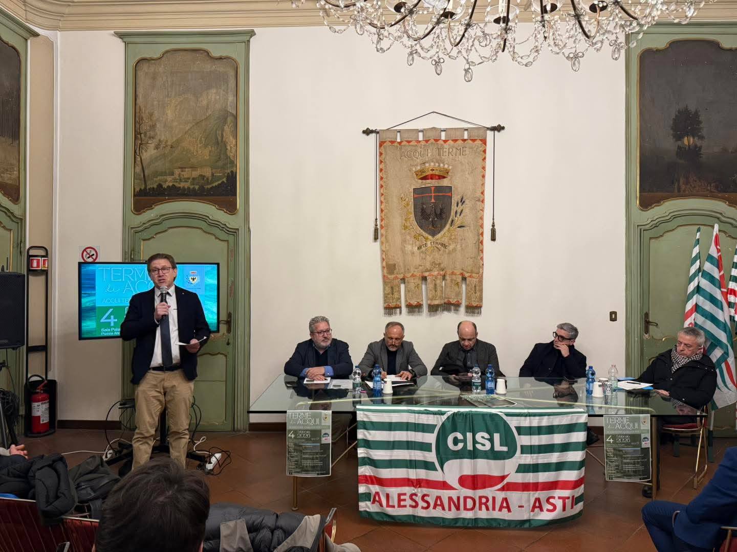 ACQUI TERME – La Cisl Alessandria-Asti, guidata da Marco Ciani, ha lanciato una proposta per il rilancio delle Terme di Acqui: la creazione di un tavolo territoriale che coinvolga istituzioni, parti sociali e mondo produttivo, con il coordinamento del Comune, per costruire una strategia condivisa di sviluppo. La proposta è stata presentata questo mercoledì 4 febbraio durante l’incontro pubblico “Terme di Acqui, quali prospettive?”, promosso dalla Cisl Alessandria-Asti e dalla zona Cisl di Acqui Terme nella Sala di Palazzo Robellini. L’appuntamento ha registrato una forte partecipazione di pubblico e la presenza di diverse realtà economiche della città.