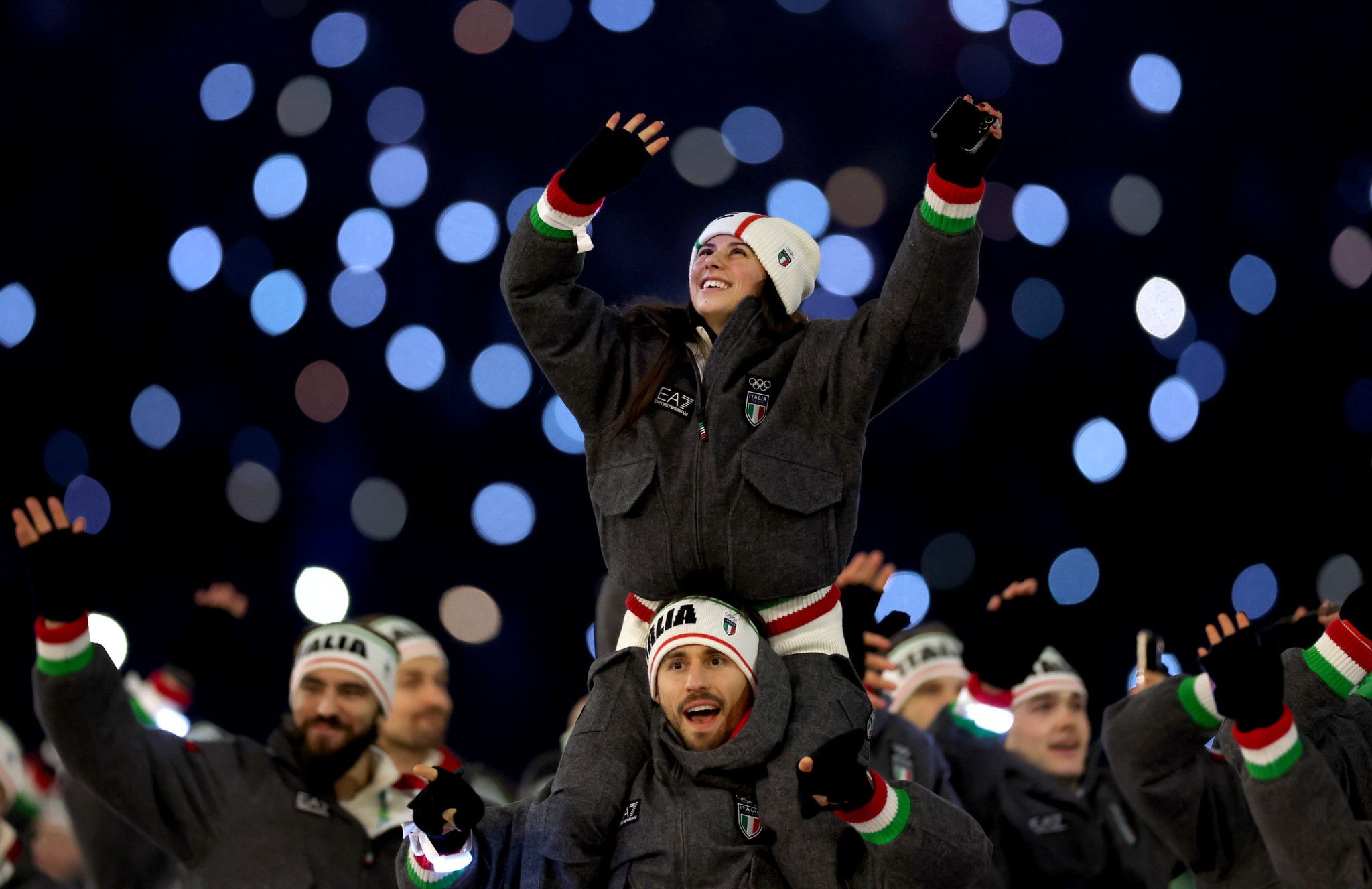 MILANO/CORTINA – Ultimi a sfilare, gli atleti della delegazione italiana hanno ovviamente fatto scatenare il pubblico nella cerimonia di apertura delle Olimpiadi Invernali. A Milano la bandiera tricolore è stata portata da Arianna Fontana e Federico Pellegrino, atleti di punta rispettivamente di short track e sci di fondo. Gli alfieri del gruppo azzurro a Cortina, invece, sono stati la sciatrice Federica Brignone e il giocatore di curling Amos Mosaner.