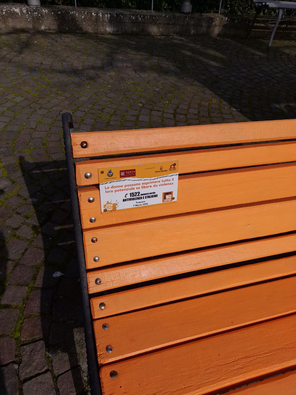 FRASCARO – Da sabato in piazza Rangone a Frascaro spicca una panchina arancione, ma non è un arredo urbano, è un presidio per prevenire la violenza sulle donne e indicare a chi ne fosse vittima che un percorso d’uscita esiste. Il sindaco di Frascaro, Massimo Nisticò, e la sua amministrazione con questa installazione hanno voluto iniziare dare sostanza all’adesione al “Patto per il contrasto della violenza di genere” promosso da Zonta Club Alessandria, firmato lo scorso 12 Novembre. Per l’inaugurazione non è stato previsto il taglio del nastro, ma alla presenza della popolazione del piccolo paese alle porte di Alessandria in direzione Acqui Terme, si è scelto di invitare una bambina e un bambino ad accomodarsi su quella panchina che esprime il rispetto che tra generi diversi occorre avere per evitare l’insorgere di pregiudizi, conflitti, e qualsiasi genere di violenza.