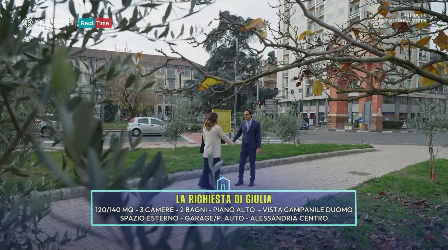 Il celebre van si è spostato dal centro al quartiere Cristo. Oltre a Ida Di Filippo, l’unica dei tre agenti a conoscere già la città (“grazie alle mie cugine” ha detto durante il programma, ndr), Gianluca Torre e Mariana D’Amico si sono sfidati per accontentare Giulia, 36enne originaria di Casale alla ricerca di un nuovo nido insieme al fidanzato Fabio, assente per impegni di lavoro ma comunque presente in collegamento durante una delle visite. Ad accompagnare Giulia in questo tour tra appartamenti e quartieri c’era la fidata amica Eugenia, insegnante di pilates. La richiesta era chiara: una casa pronta da vivere, tra i 100 e i 140 metri quadrati, con un budget di circa 200 mila euro. Il dettaglio irrinunciabile? Una vista sul campanile del Duomo di Alessandria. Gianluca Torre, che ha ammesso di non conoscere bene la città, si è messo a studiarla nei dettagli e ha scelto il centro storico per la sua proposta, in zona spalto Gamondio. L’incontro con Giulia ed Eugenia è avvenuto in piazza Genova – o meglio, piazza Matteotti, come tiene a precisare lo stesso agente, dimostrando la sua preparazione.