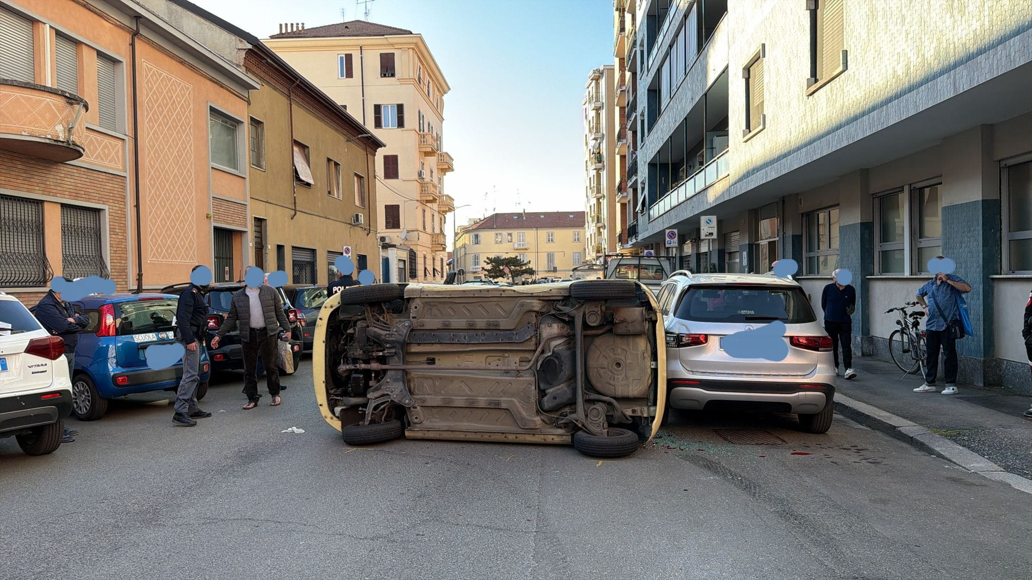 Scontro frontale in via Tortona ad Alessandria: due feriti e un’auto ribaltata