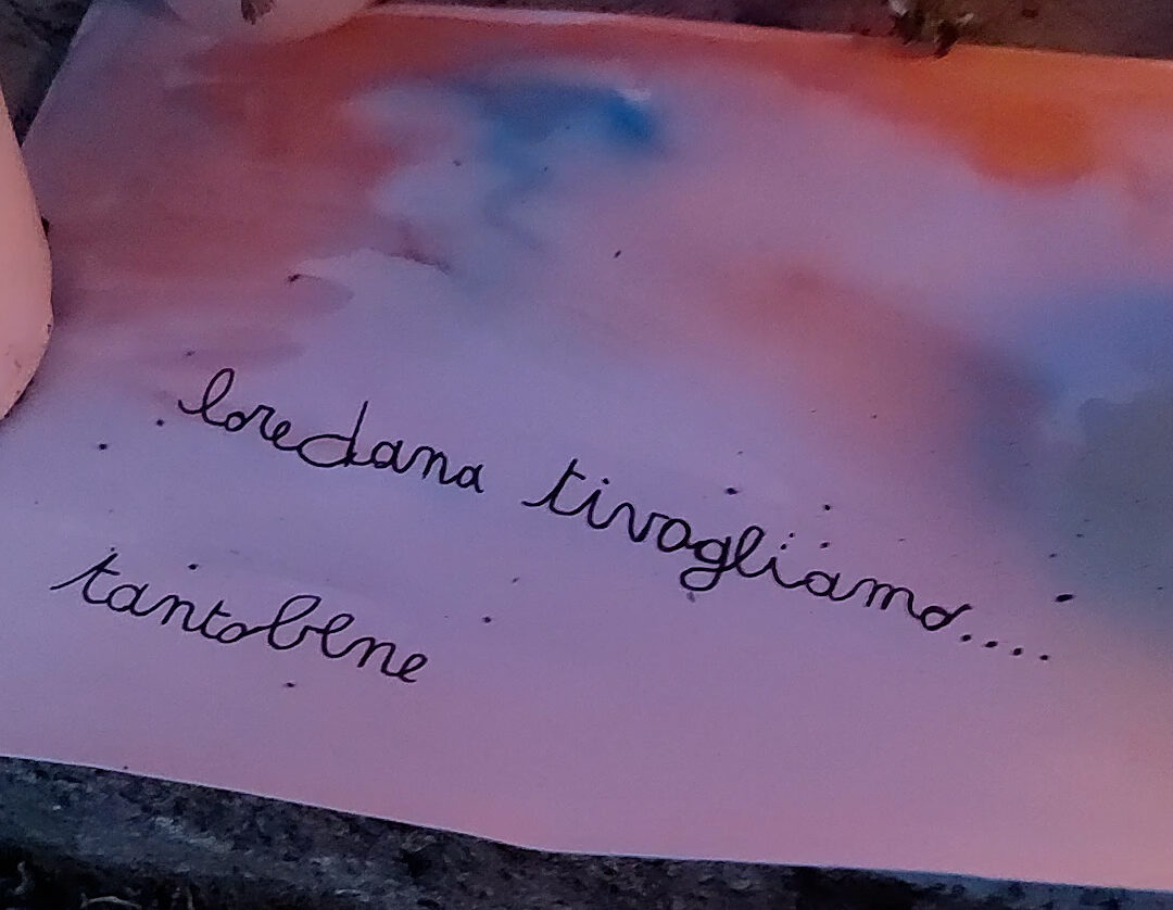 Nella foto uno dei biglietti lasciati in via Manzoni, nel luogo dove lunedì Loredana Ferrara è stata uccisa.