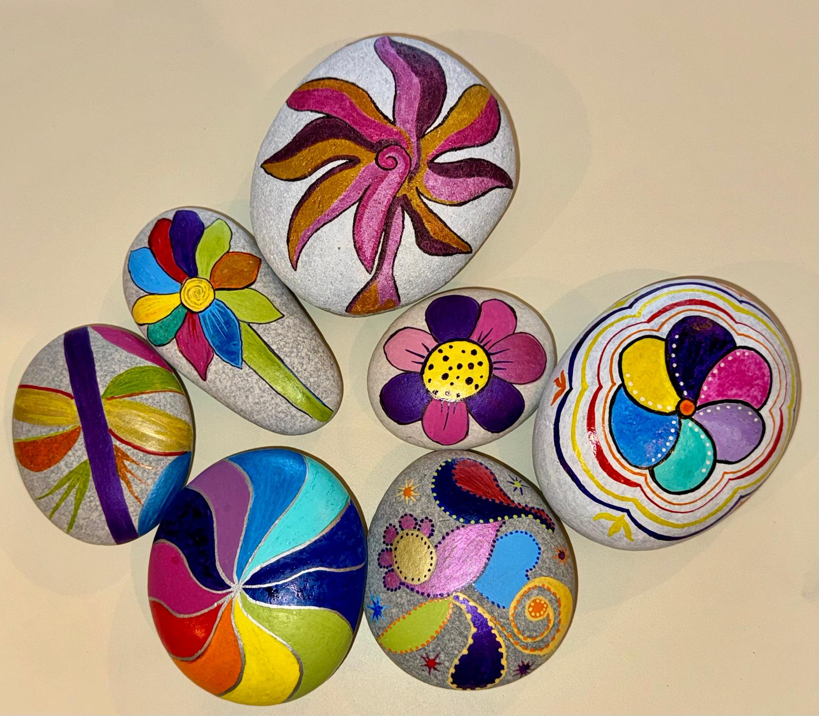 Centinaia di sassi dipinti si affiancano a pietre decorate con la tecnica del decoupage, che raffigurano donne simbolo di coraggio come Rita Levi Montalcini, Lella Lombardi, Maria Magnani Noya e Tina Lagostena Bassi. Donne che i “talenti negati” avrebbero potuto diventare.