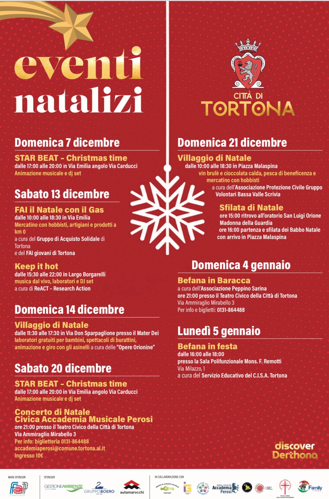 TORTONA – Anche quest’anno Tortona si prepara a vivere la magia del Natale con un ricco calendario di appuntamenti pensati per coinvolgere famiglie, bambini, giovani e tutti coloro che desiderano respirare l’atmosfera delle festività. Il Comune, insieme alle associazioni del territorio, ha messo a punto un programma che animerà le vie e le piazze della città con musica, mercatini, laboratori, spettacoli e momenti dedicati alle tradizioni più amate.