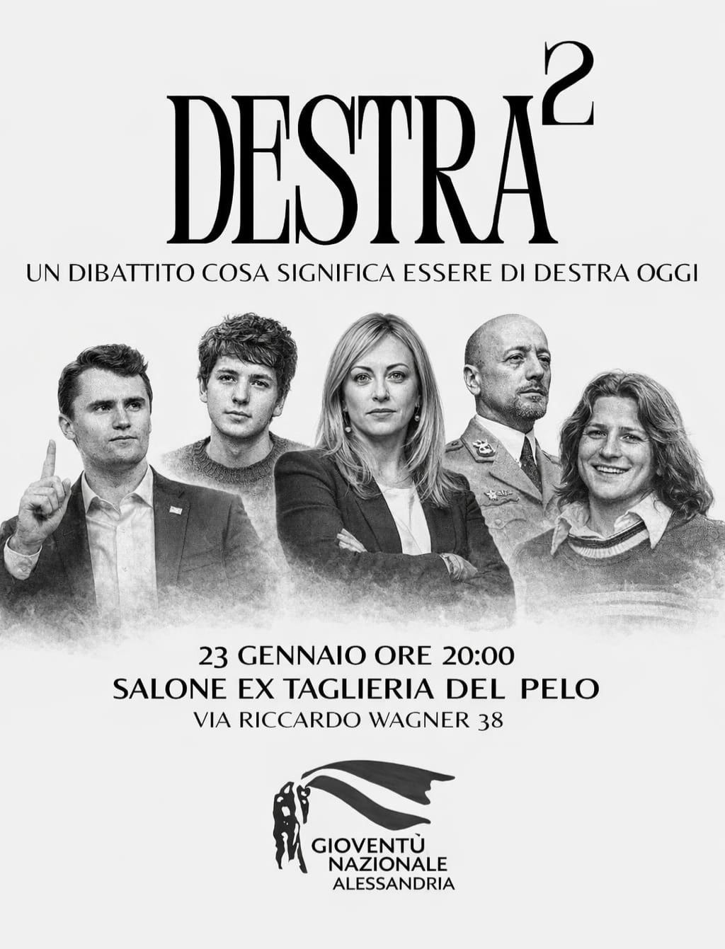 ALESSANDRIA – Si intitola “Destra²-Cosa significa essere di destra oggi?” il convegno in programma questo venerdì 23 gennaio 2026 ad Alessandria, promosso da Gioventù Nazionale. “Un confronto aperto tra le realtà territoriali di Gioventù Nazionale, per discutere idee, visioni e prospettive della destra contemporanea. Un dibattito vivo tra relazioni di sezione, esperienze diverse e una stessa passione per l’impegno politico” hanno sottolineato gli organizzatori. Interverranno i responsabili e i giovani militanti delle sezioni di Gioventù Nazionale provenienti da tutto il Nord-Ovest. Il giornalista e scrittore Siro Mazzo modererà la serata. Ad aprire i lavori saranno Emanuele Locci, presidente del gruppo consiliare di Fratelli d’Italia ad Alessandria, il coordinatore comunale di Fratelli d’Italia Alessandro Traverso e Matteo Benetazzo, coordinatore regionale di Gioventù Nazionale. L’iniziativa è coordinata da Sara Plopeanu, coordinatrice di Gioventù Nazionale Alessandria, che ha sottolineato il senso politico dell’incontro: “DESTRA² nasce dalla volontà di dare spazio alle idee e alle esperienze dei giovani: vogliamo confrontarci senza slogan, partendo dai territori e dalle persone, per capire cosa significa oggi essere di destra e come tradurre valori e identità in impegno concreto». L’iniziativa è organizzata da Gioventù Nazionale con il supporto del partito Fratelli d’Italia.