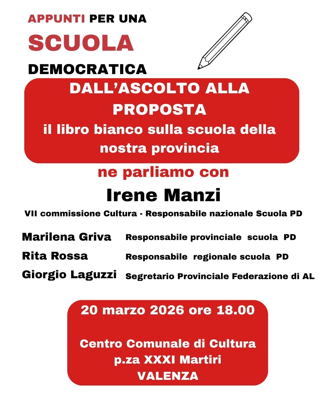 Appunti per una Scuola Democratica: a Valenza incontro con la deputata Pd Irene Manzi