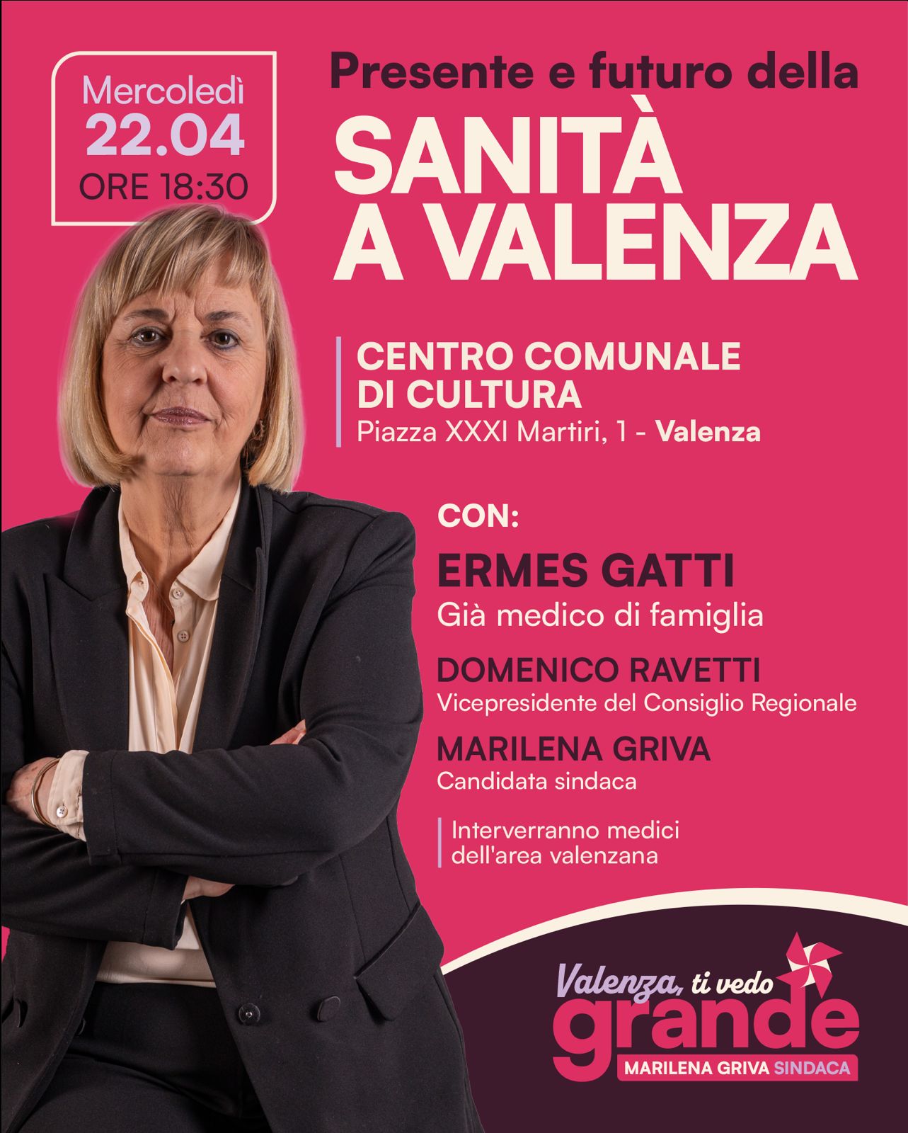 “L’incontro nasce con l’obiettivo di offrire un momento di confronto e approfondimento sulle criticità attuali, sui bisogni dei cittadini e sulle possibili prospettive di sviluppo della sanità locale, mettendo al centro le esigenze della comunità”. Interverranno Ermes Gatti, già medico di famiglia, Domenico Ravetti, vicepresidente del Consiglio regionale e membro della Commissione Sanità della Regione Piemonte e la stessa Marilena Griva, candidata sindaca. Nel corso della serata è previsto anche il contributo di medici e operatori dell’area valenzana, che porteranno il loro punto di vista sullo stato attuale della sanità e sulle priorità per il futuro.
