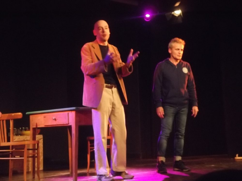 Lo spettacolo si sviluppa con un registro leggero e regala momenti decisamente ilari. Tutta la sequenza della partita si gioca sull’esagitazione di Repetto, i cui gesti forsennati, prima volti ad insultare, poi a correre per il campo, sono sottolineati dalle reazioni di Ghnò. L’accoppiata funziona, il ritmo aumenta e la gestualità, che diventa vera fatica, è reale e diverte tanto da suscitare numerose risate nel pubblico in sala. Il testo di Mauro Pescio spicca per originalità, sviluppa le personalità dei due protagonisti e li contestualizza nel loro ambiente, per arrivare al nocciolo della storia, ovvero il giusto modo di vivere una passione che migliora la vita. Bravi e ben affiatati Repetto e Ghnò, entrambi convincenti in due ruoli speculari e complementari.