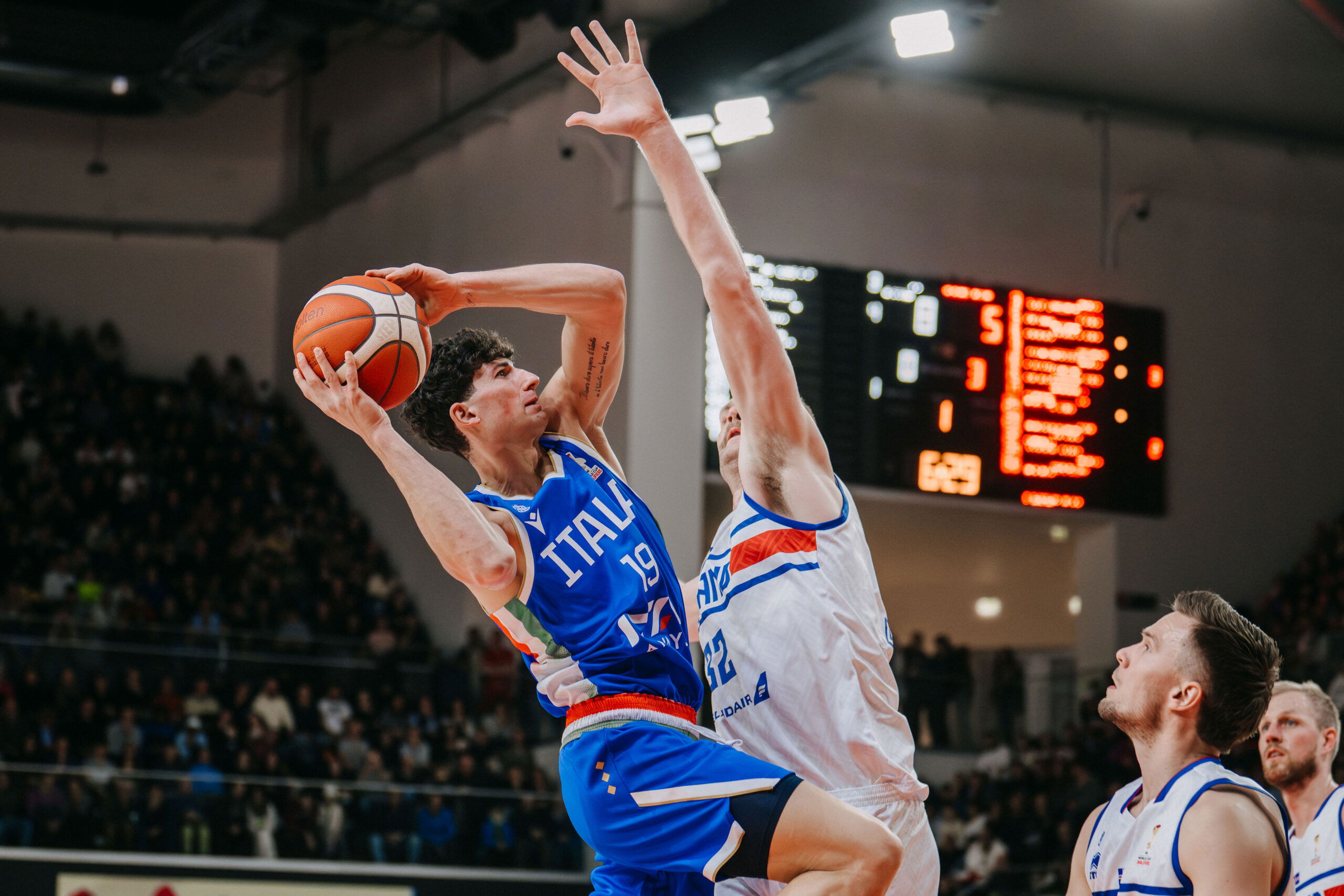 TORTONA – Purtroppo il tifo incessante della Nova Arena di Tortona non è bastato. L’Italbasket ha perso 76-81 la prima partita del girone di qualificazione mondiale contro l’Islanda: una sfida in equilibrio fino alla fine, decisa dall’accelerazione dei nordici nel quarto quarto. Tra i ragazzi di Luca Banchi da segnalare, in particolare, i 13 punti di Tommaso Baldasso, cestista della Bertram Derthona. Una serata comunque da ricordare per tutto lo sport tortonese e, in particolare, per lo splendido momento iniziale: l’arrivo di Achille Polonara alla Cittadella dello Sport, anche lui applaudito da tutto il palazzetto. Foto di Nicolò Guerra