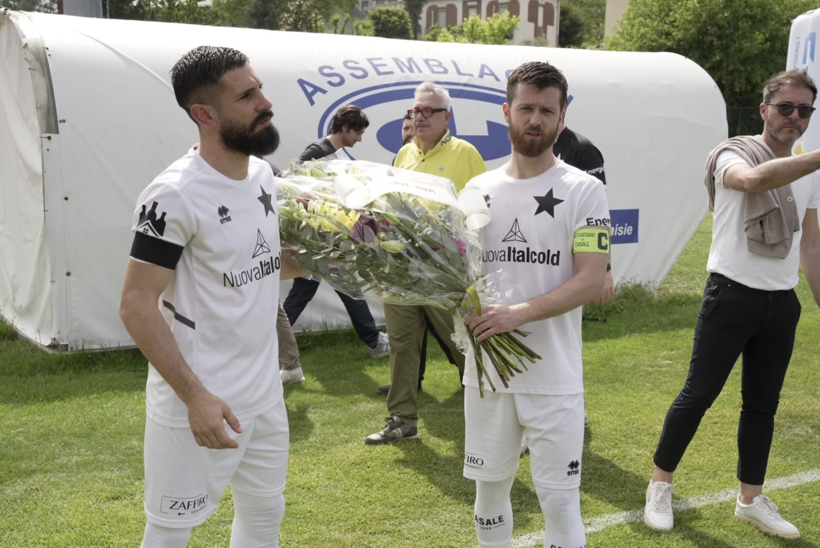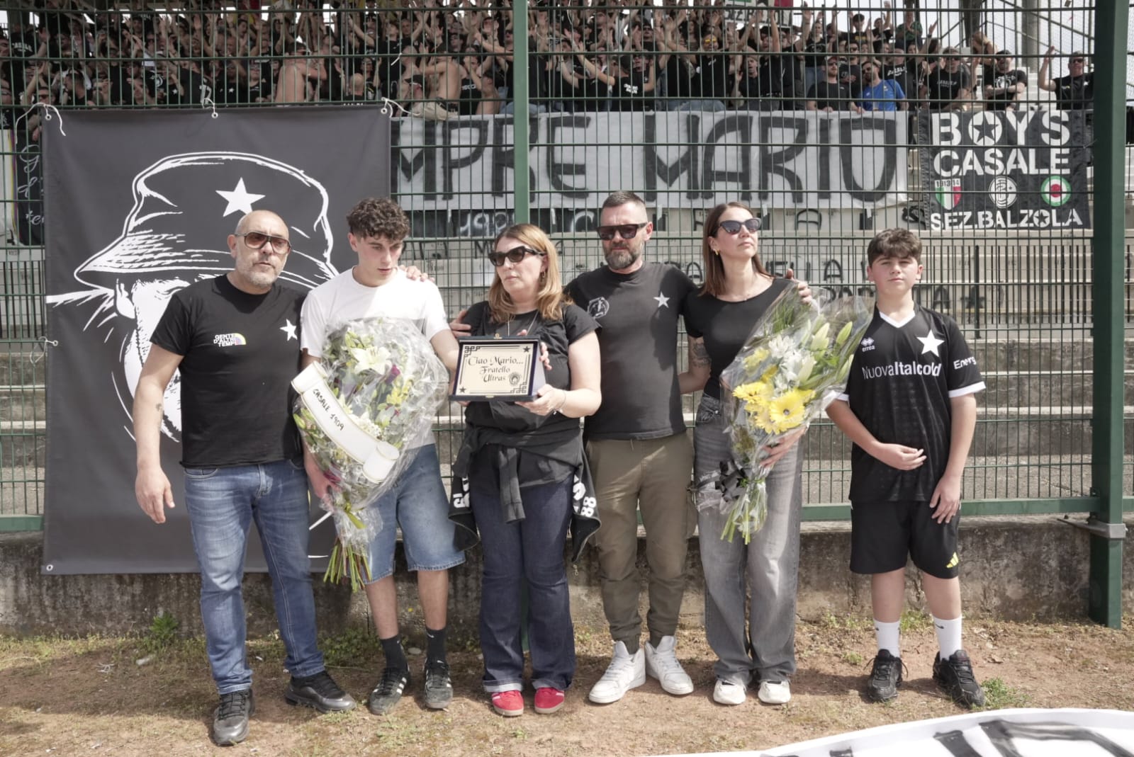 CASALE MONFERRATO – Nell’ultimo match casalingo della stagione il Casale, già promosso matematicamente in Eccellenza, ha dedicato il successo per 4-1 sul Banchette Colleretto a Mario Fassino, storico tifoso ed ex giocatore nerostellato improvvisamente mancato lo scorso martedì ad appena 47 anni. “Per sempre Mario” e “Ci sarà tuo figlio a cantare per te” i due toccanti messaggi riportati sugli striscioni. Foto Ufficio Stampa Casale 1909