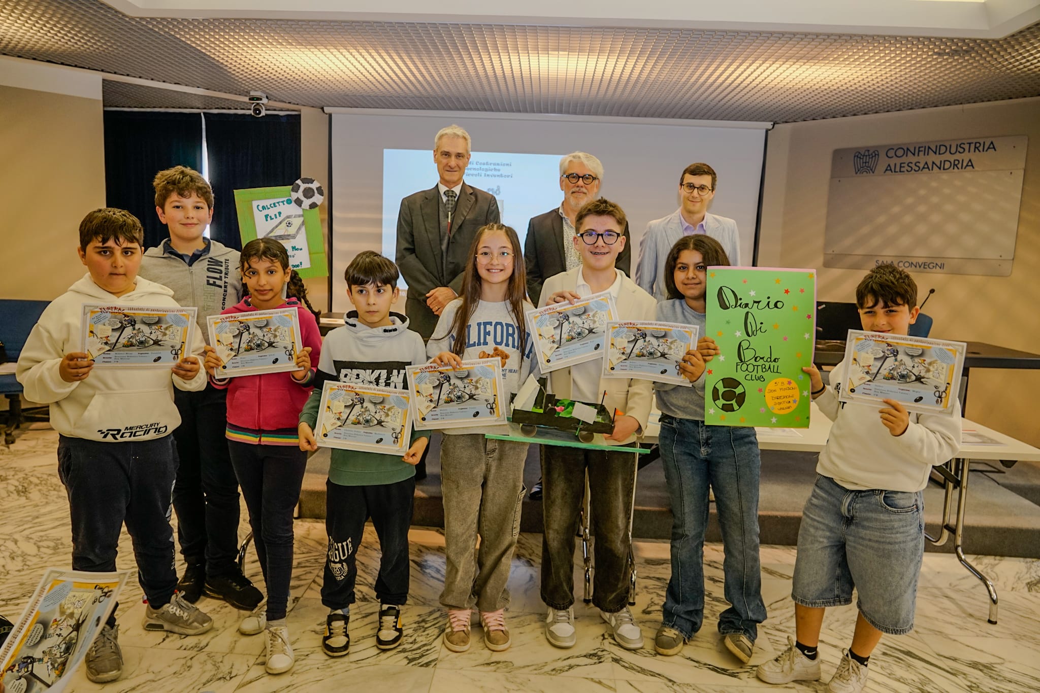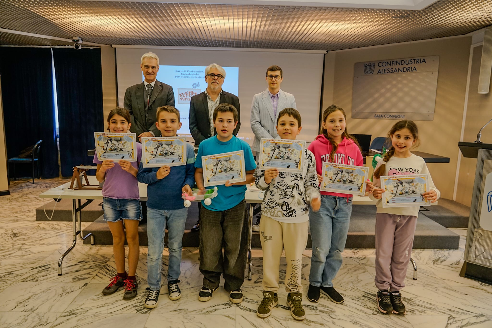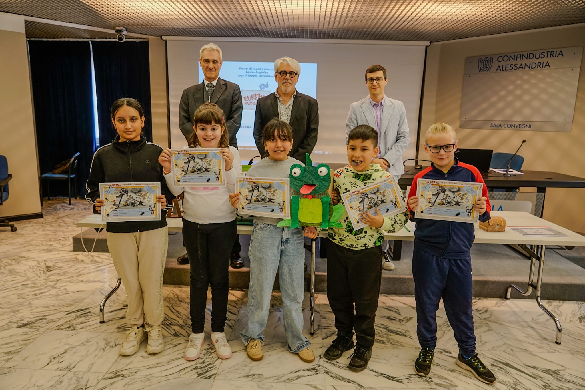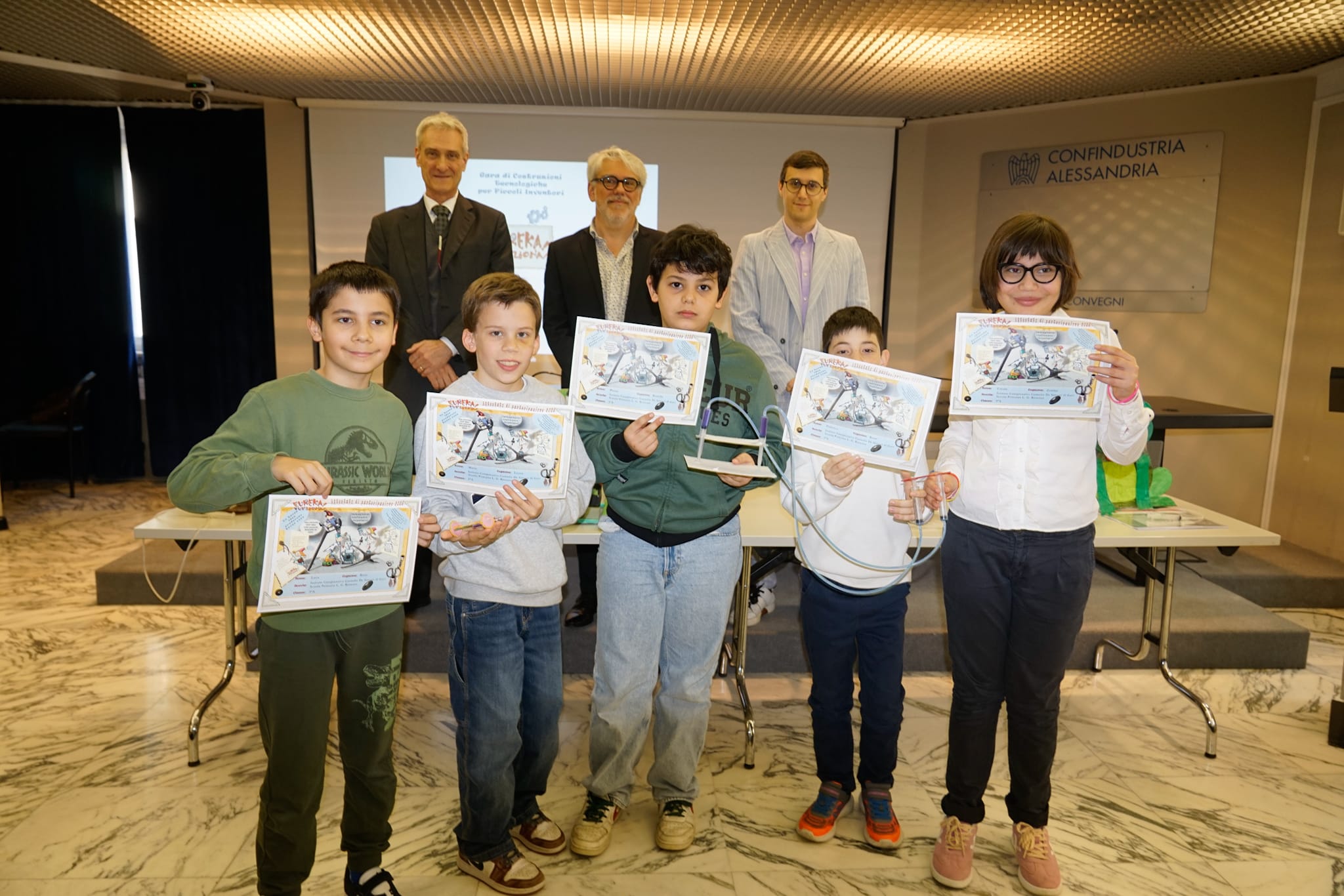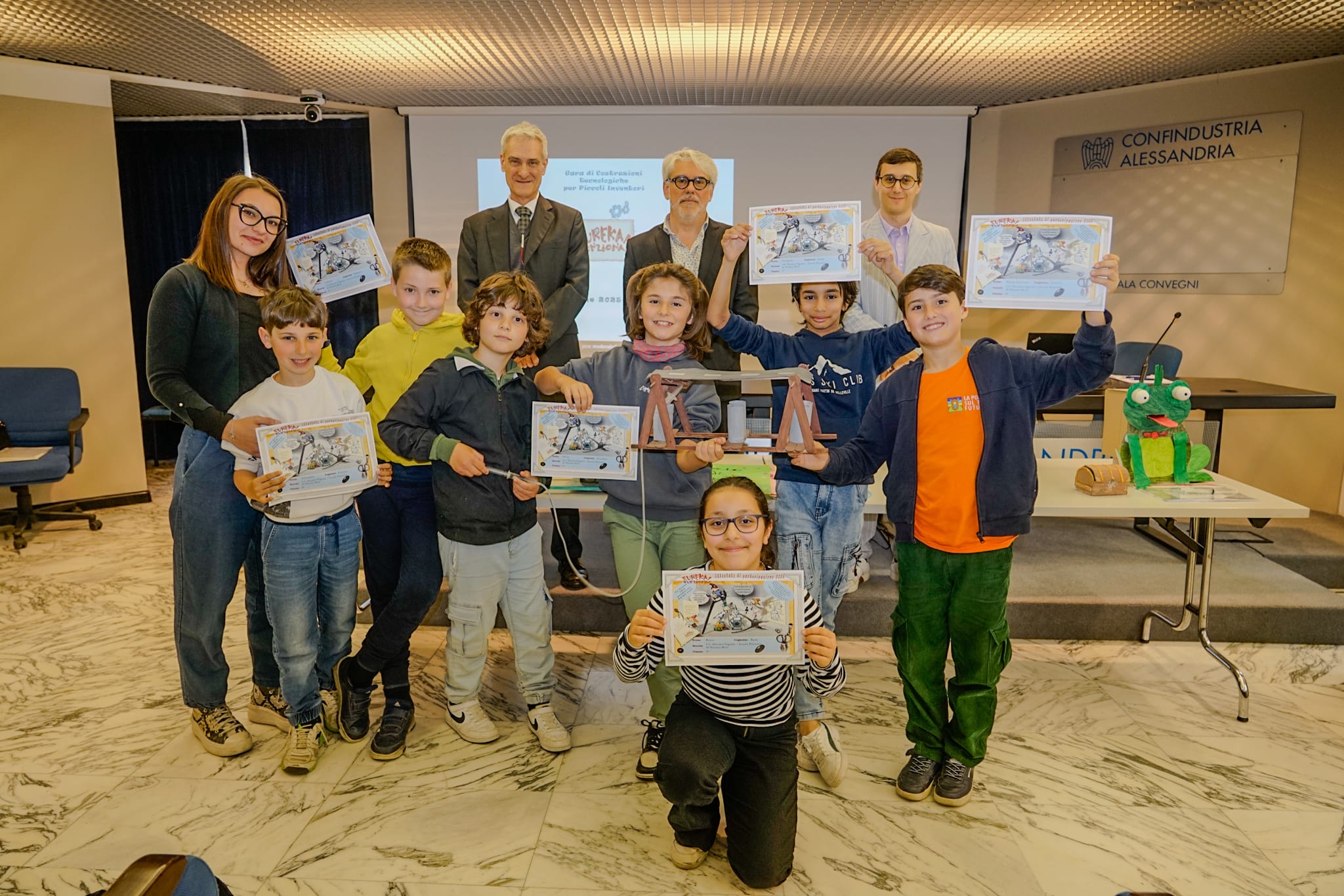 PROVINCIA DI ALESSANDRIA – Sono stati premiati gli alunni delle scuole primarie della provincia di Alessandria che hanno partecipato alla gara di costruzioni tecnologiche per piccoli inventori “Eureka! Funziona!” promossa da Confindustria Alessandria. Per la gara gli alunni hanno inventato e costruito un giocattolo: hanno partecipato le scuole primarie “Carducci” di Alessandria; “Don Minzoni” di Valenza; “L. G. Romano” di Gavi; “Bisio” di Carpeneto; Scuola Primaria di Ozzano Monferrato. La premiazione provinciale si è svolta il 23 aprile presso la sede di Confindustria Alessandria.